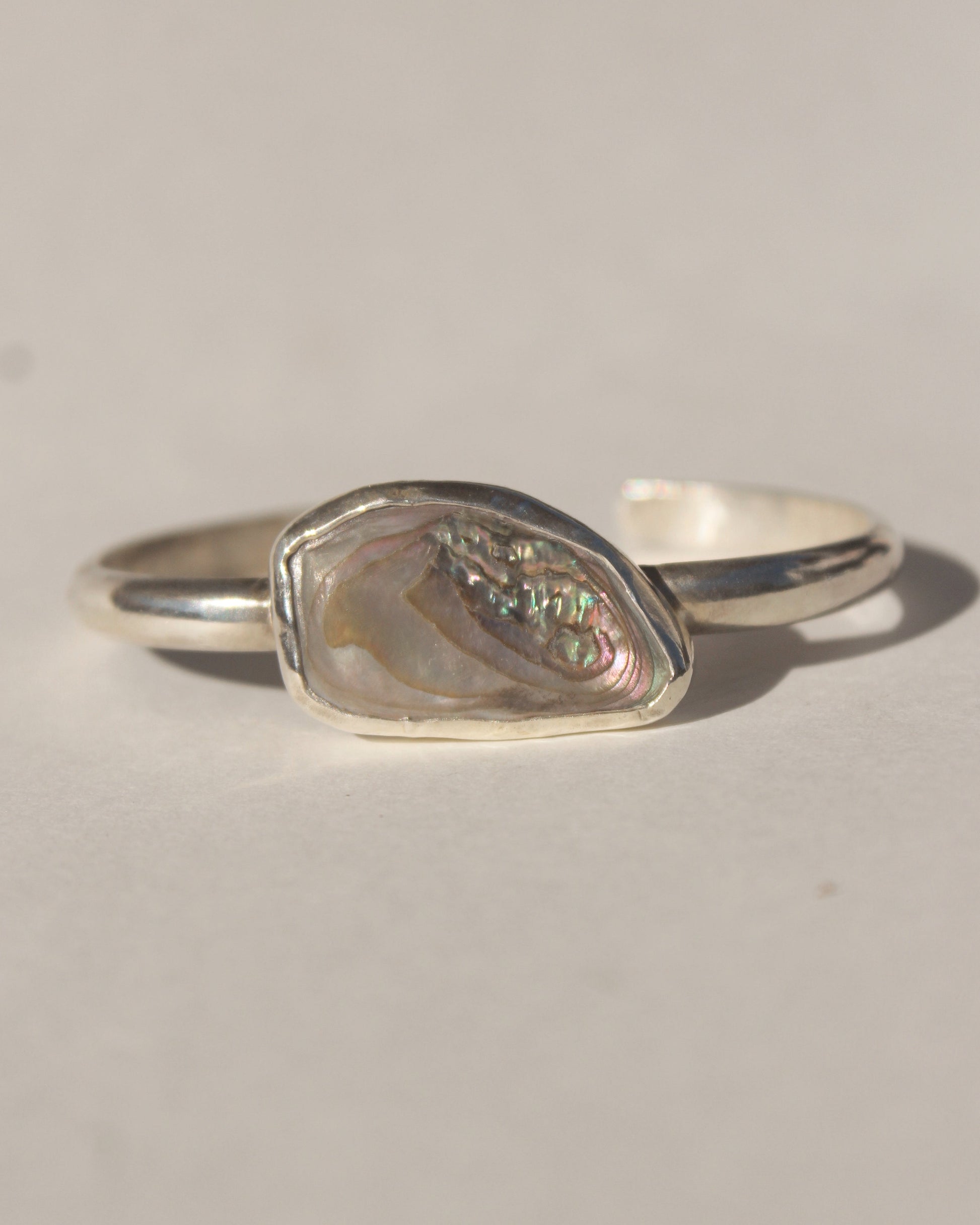 Each of these cuffs are one of a kind as no two pieces of abalone are the same. The abalone is from Northern California and the cuffs are made in Southern California with .925 sterling silver.