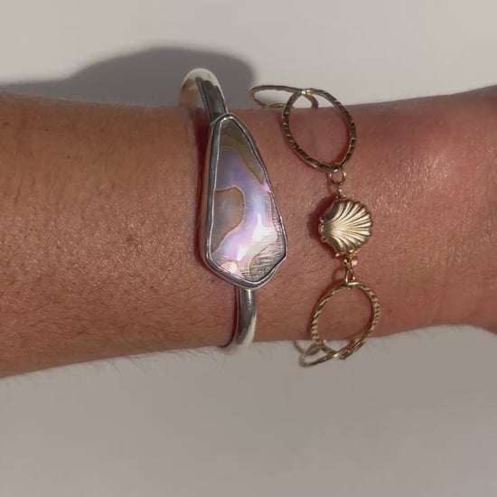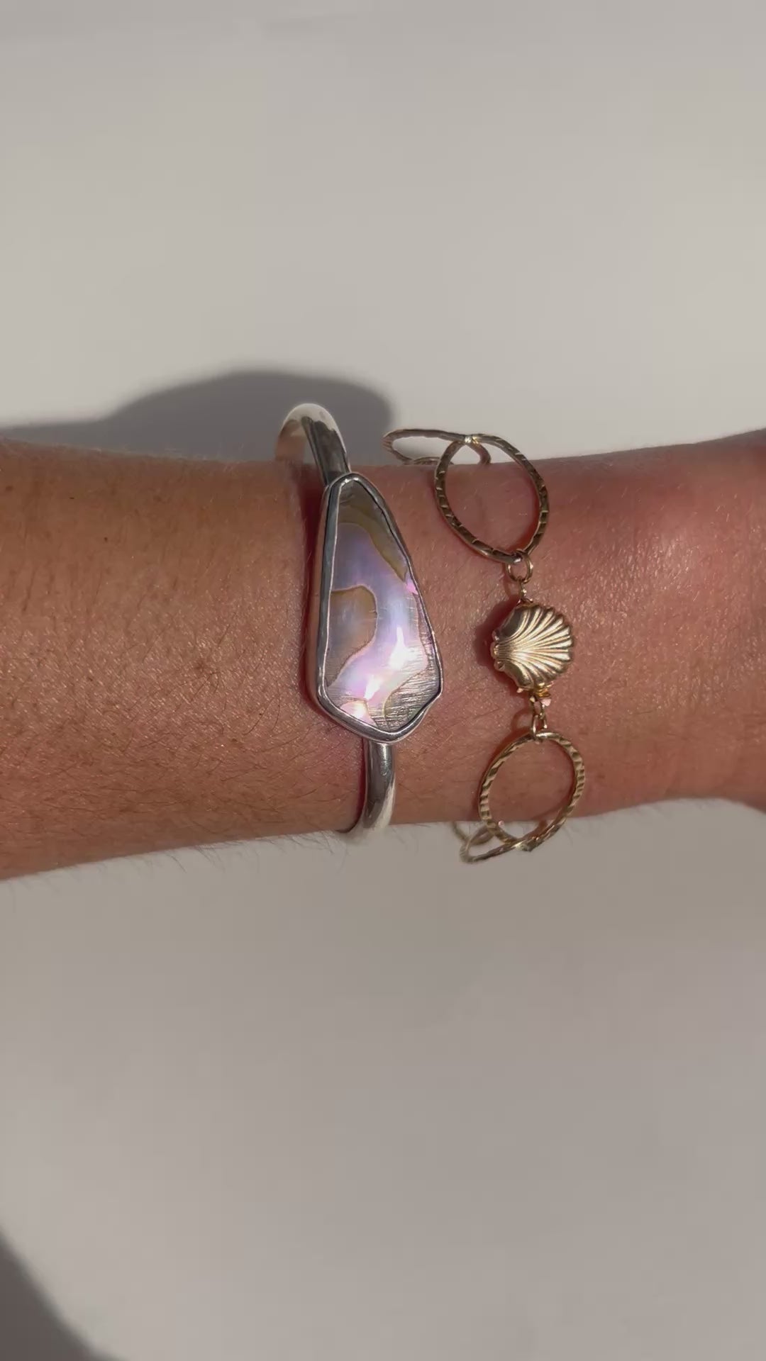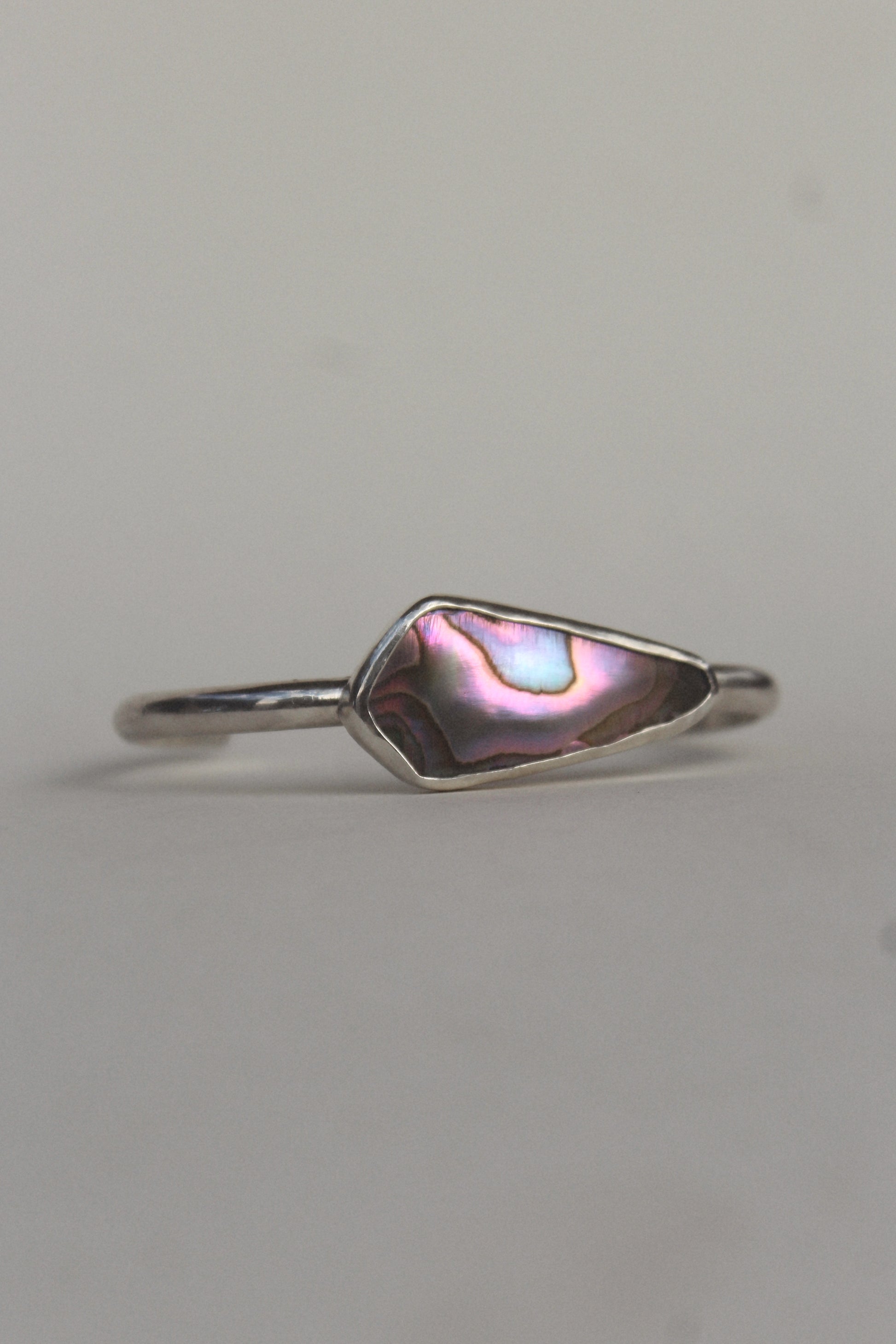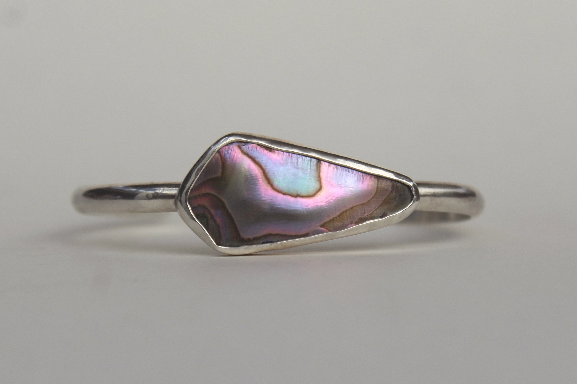 Each of these cuffs are one of a kind as no two pieces of abalone are the same. The abalone is from Northern California and the cuffs are made in Southern California with .925 sterling silver.