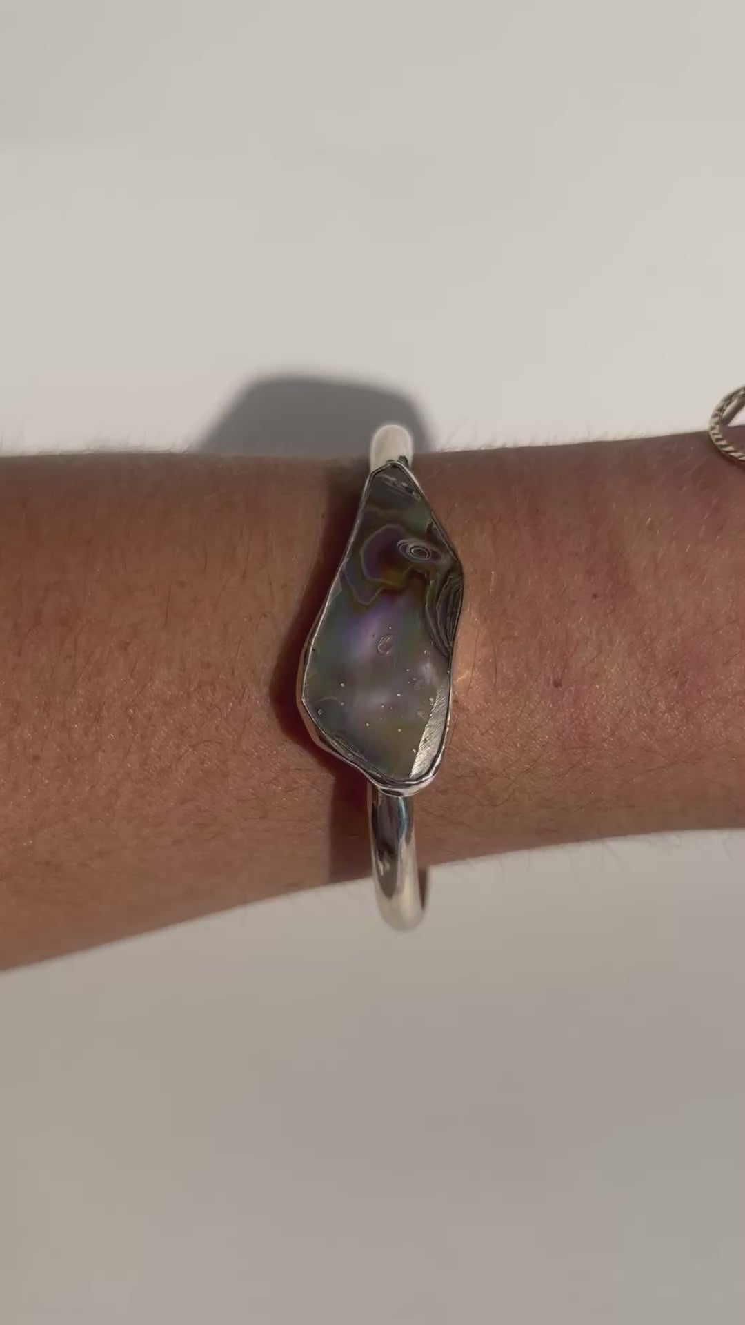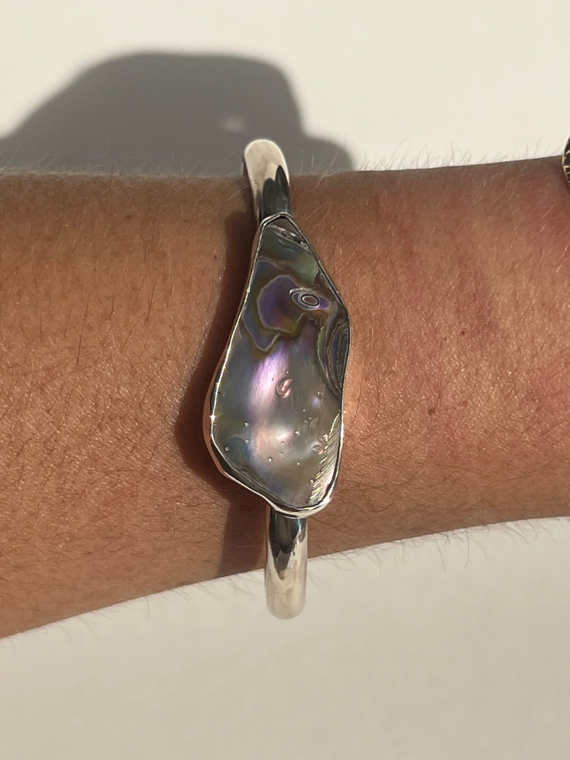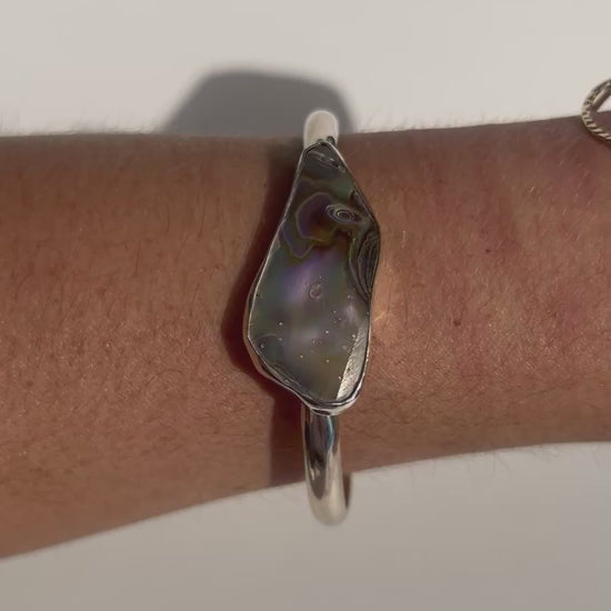 Each of these cuffs are one of a kind as no two pieces of abalone are the same. The abalone is from Northern California and the cuffs are made in Southern California with .925 sterling silver.