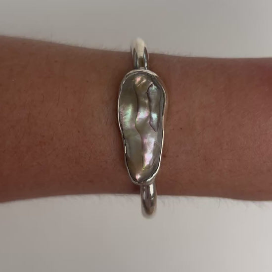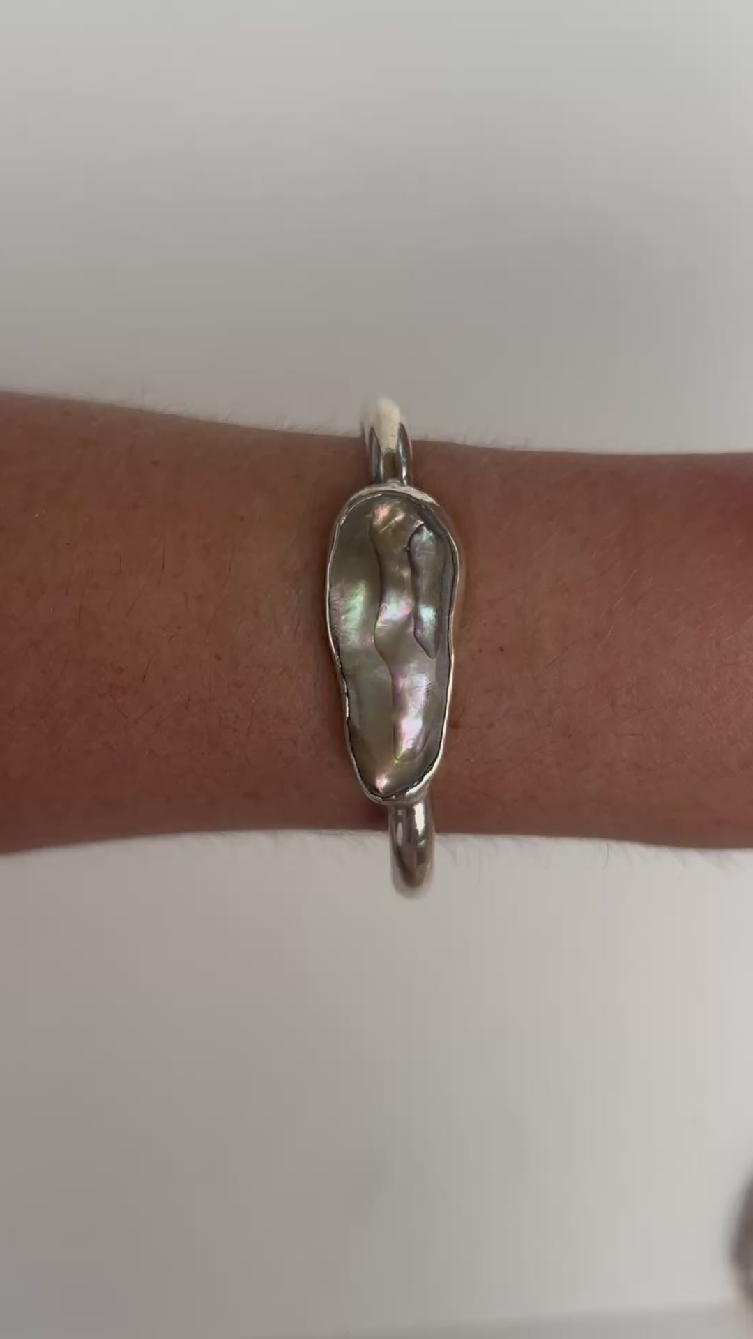 Each of these cuffs are one of a kind as no two pieces of abalone are the same. The abalone is from Northern California and the cuffs are made in Southern California with .925 sterling silver.