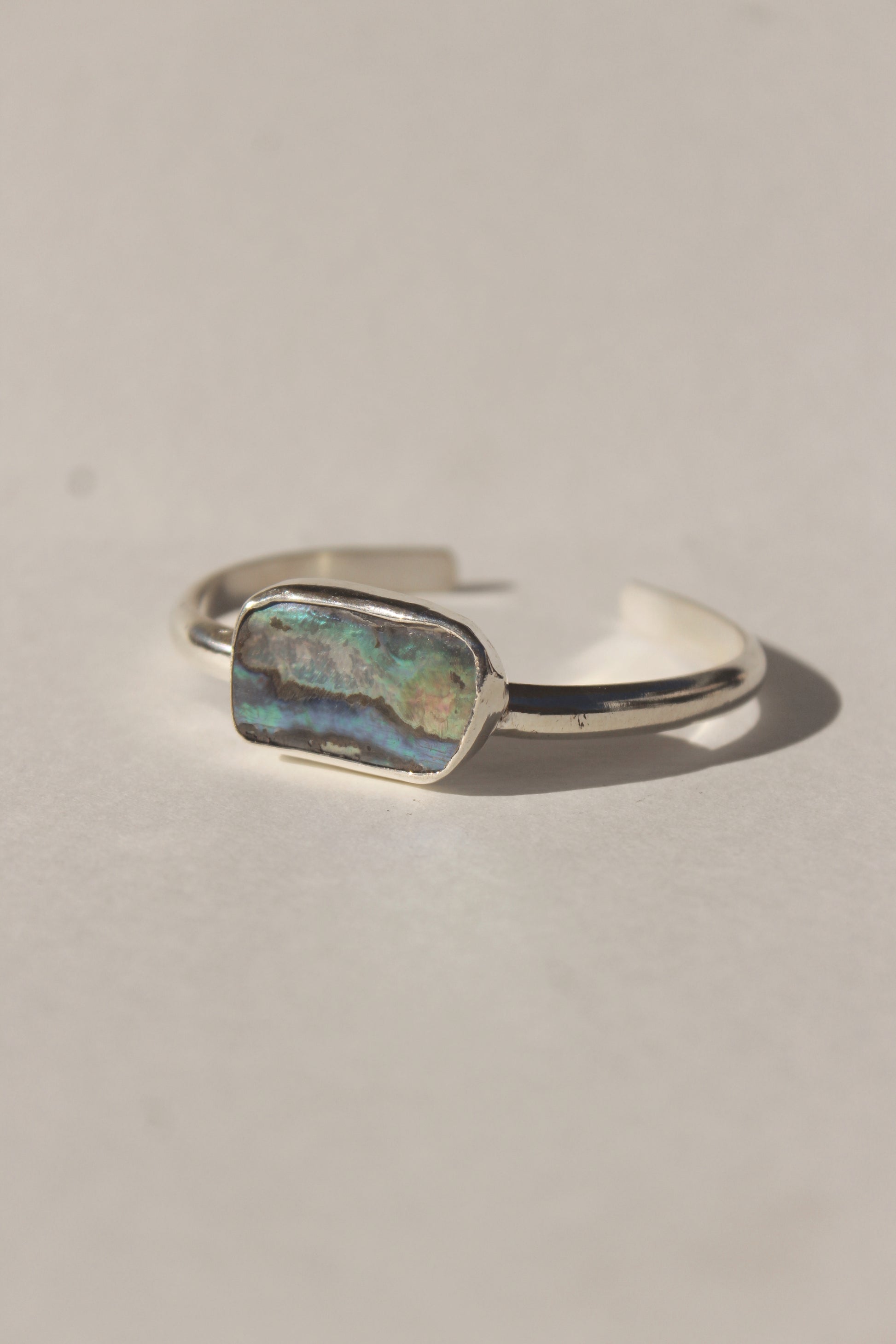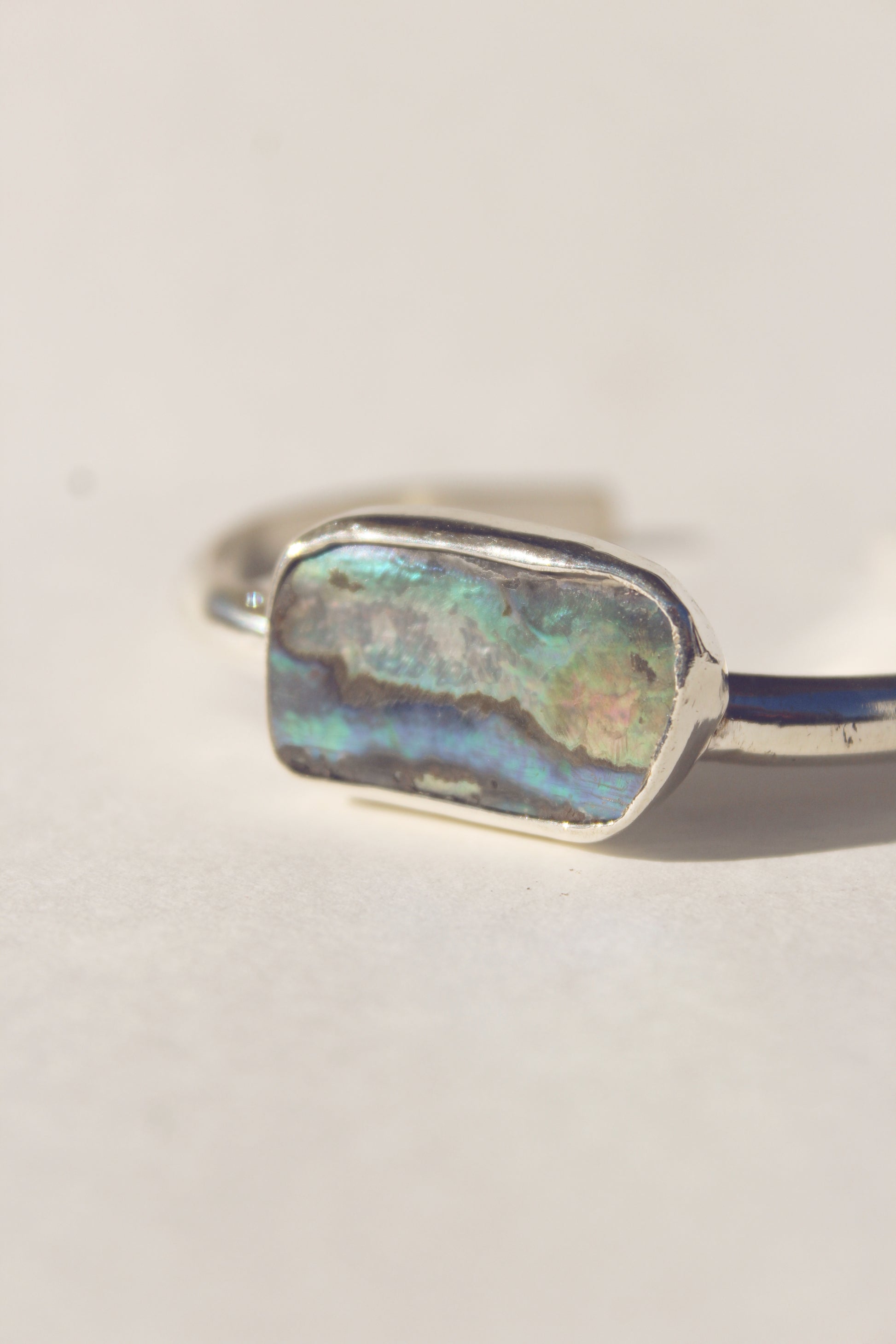 Each of these cuffs are one of a kind as no two pieces of abalone are the same. The abalone is from Northern California and the cuffs are made in Southern California with .925 sterling silver.