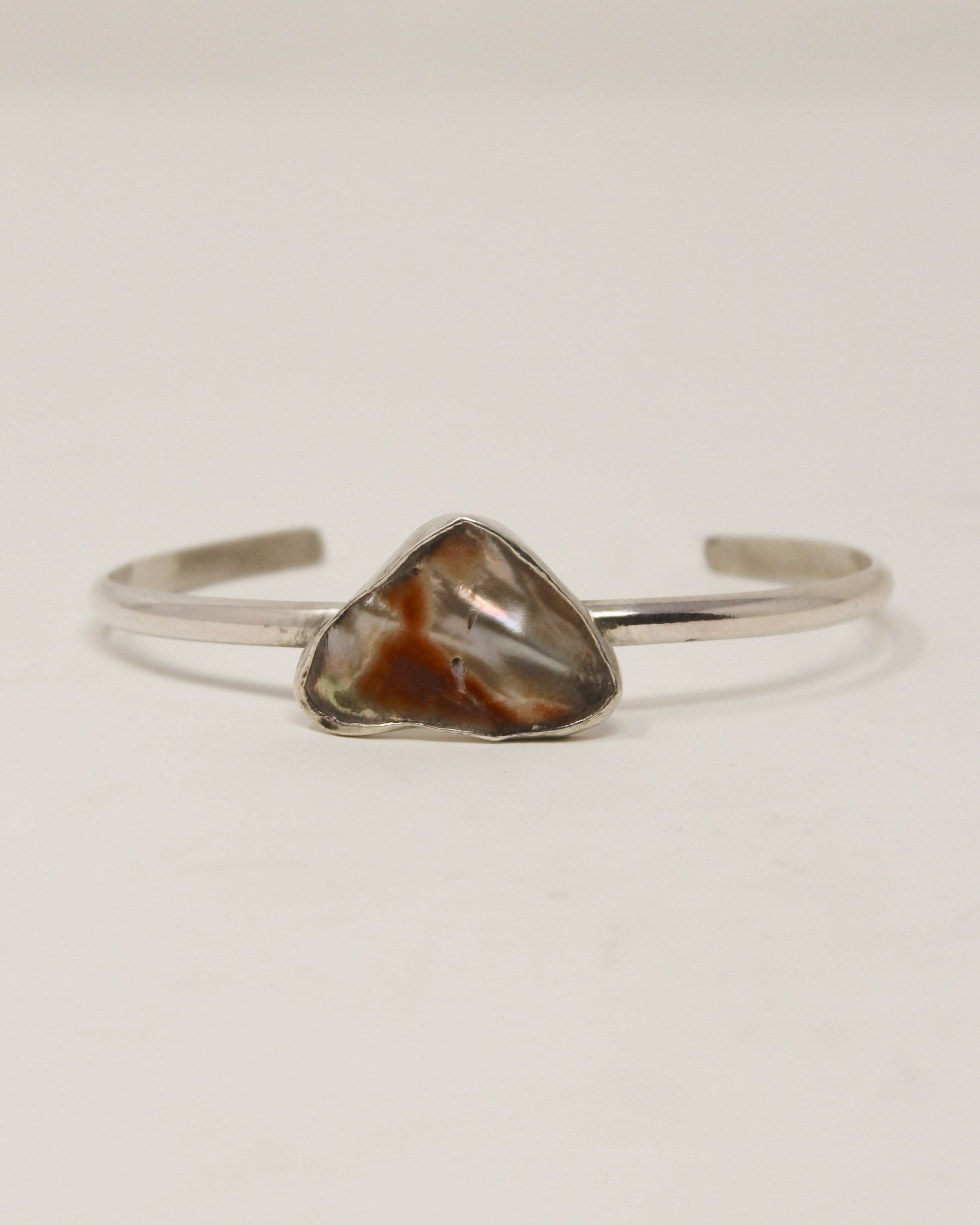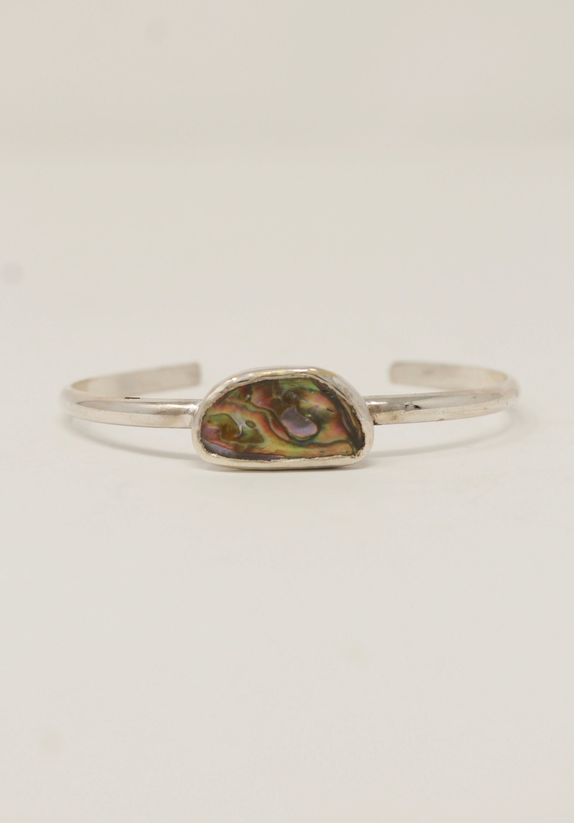 Each of these cuffs are one of a kind as no two pieces of abalone are the same. The abalone is from Northern California and the cuffs are made in Southern California with .925 sterling silver.