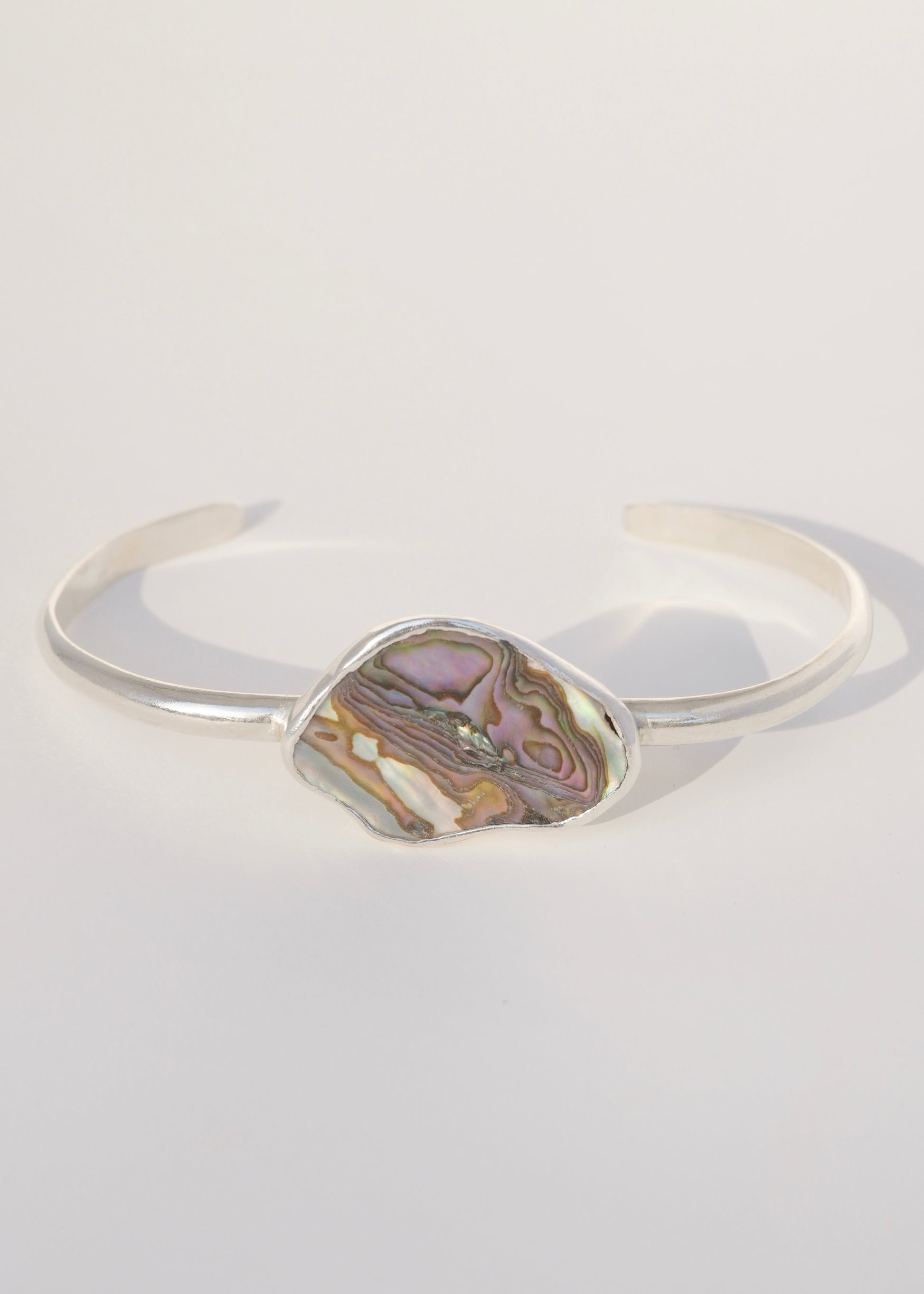 Each of these cuffs are one of a kind as no two pieces of abalone are the same. The abalone is from Northern California and the cuffs are made in Southern California with 999 fine silver and 925 sterling silver.