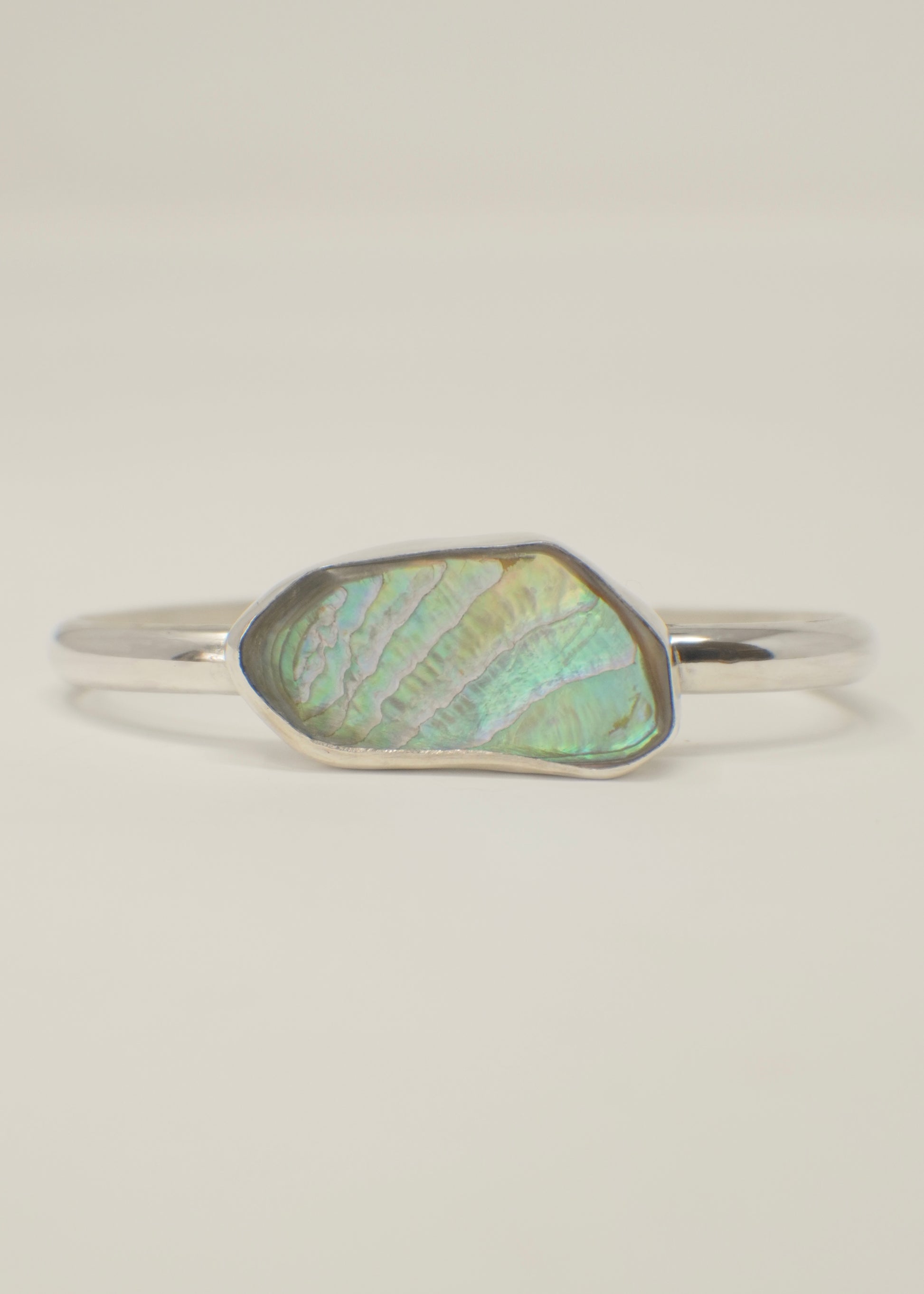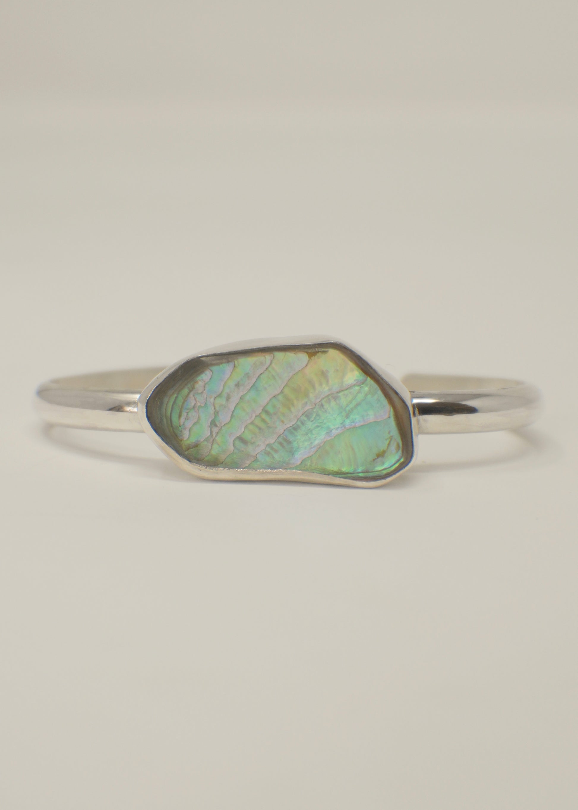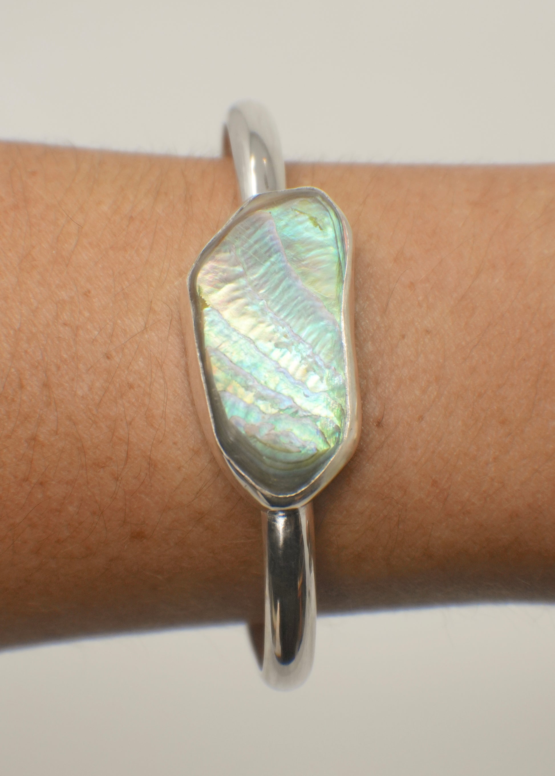 Each of these cuffs are one of a kind as no two pieces of abalone are the same. The abalone is from Northern California and the cuffs are made in Southern California in my home studio with 999 fine silver and 925 sterling silver.