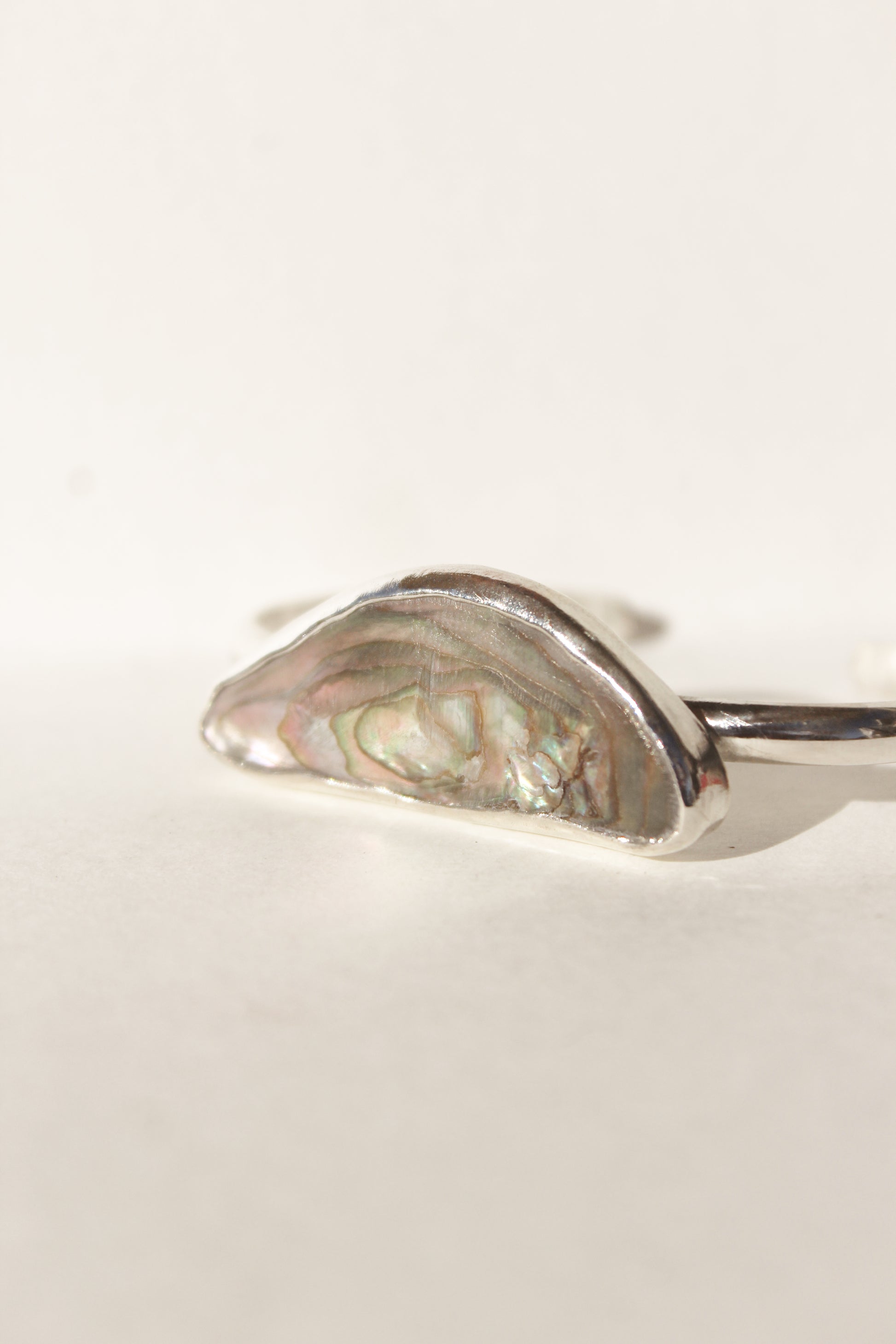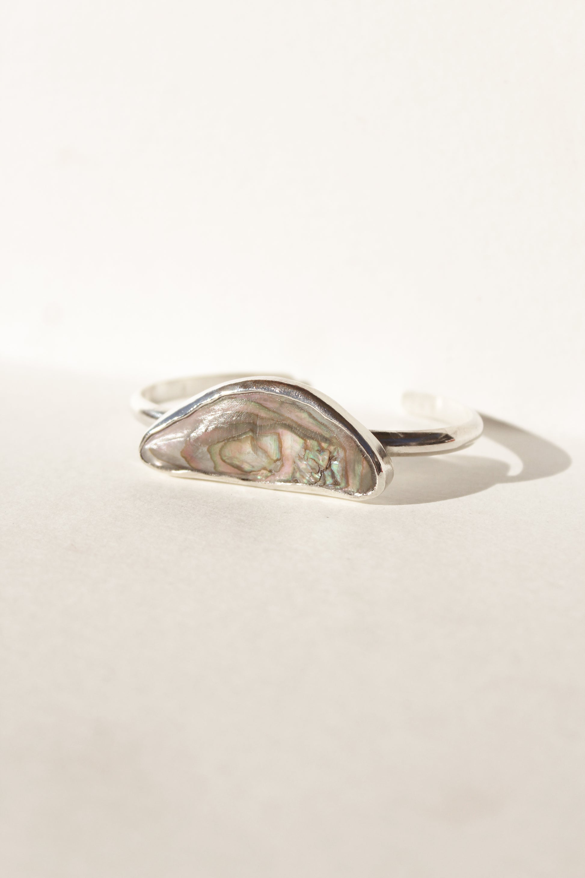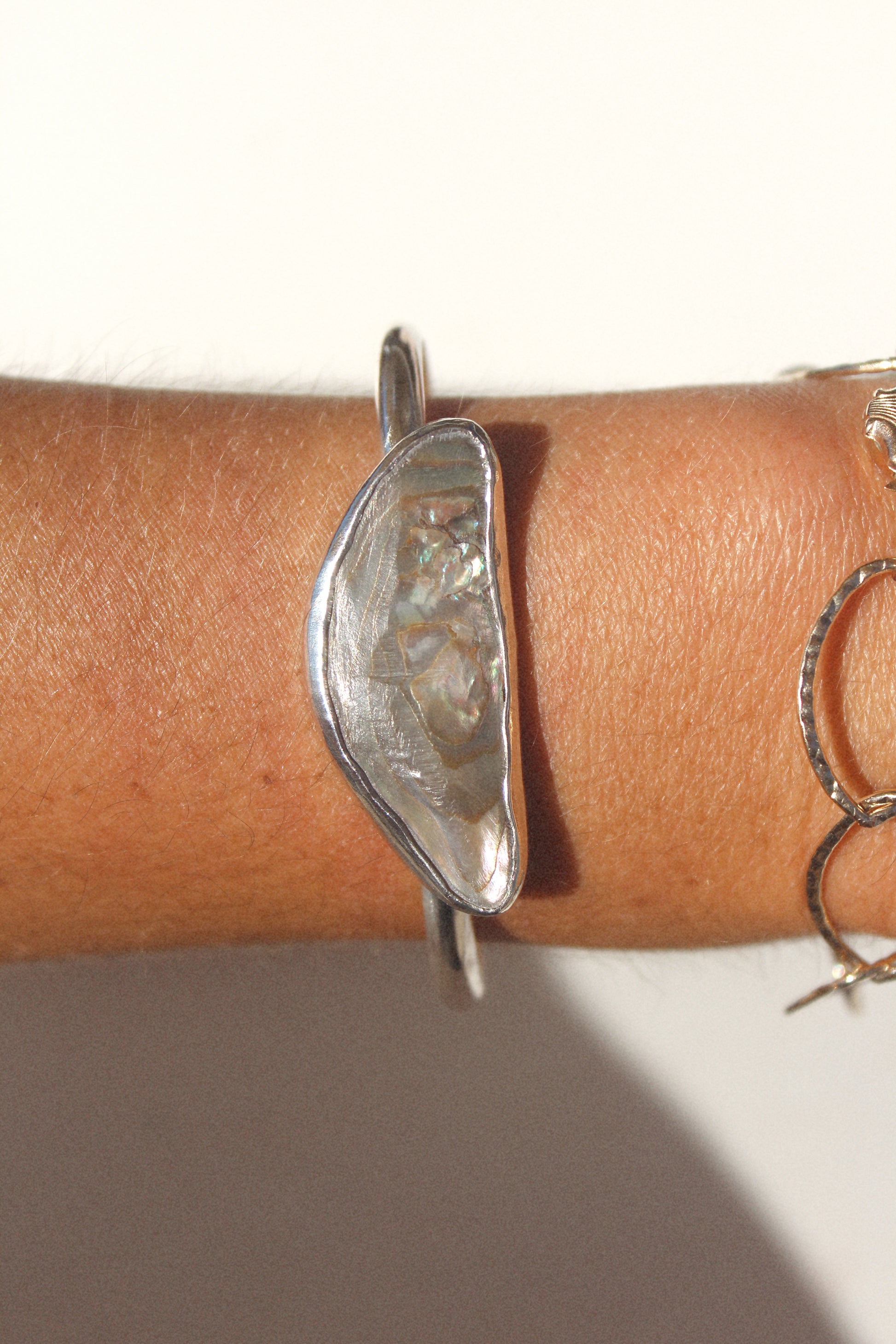 Each of these cuffs are one of a kind as no two pieces of abalone are the same. The abalone is from Northern California and the cuffs are made in Southern California with .925 sterling silver.