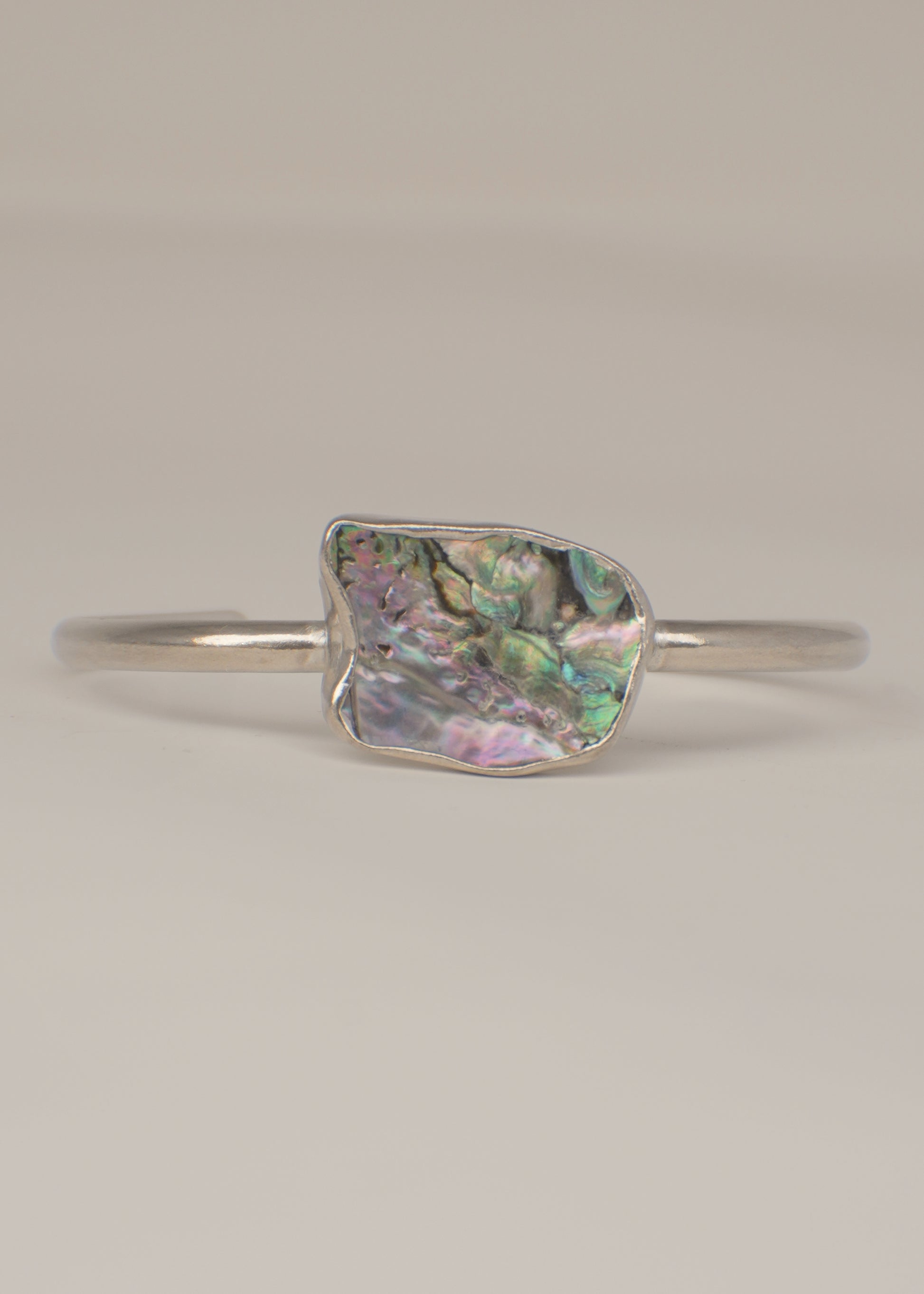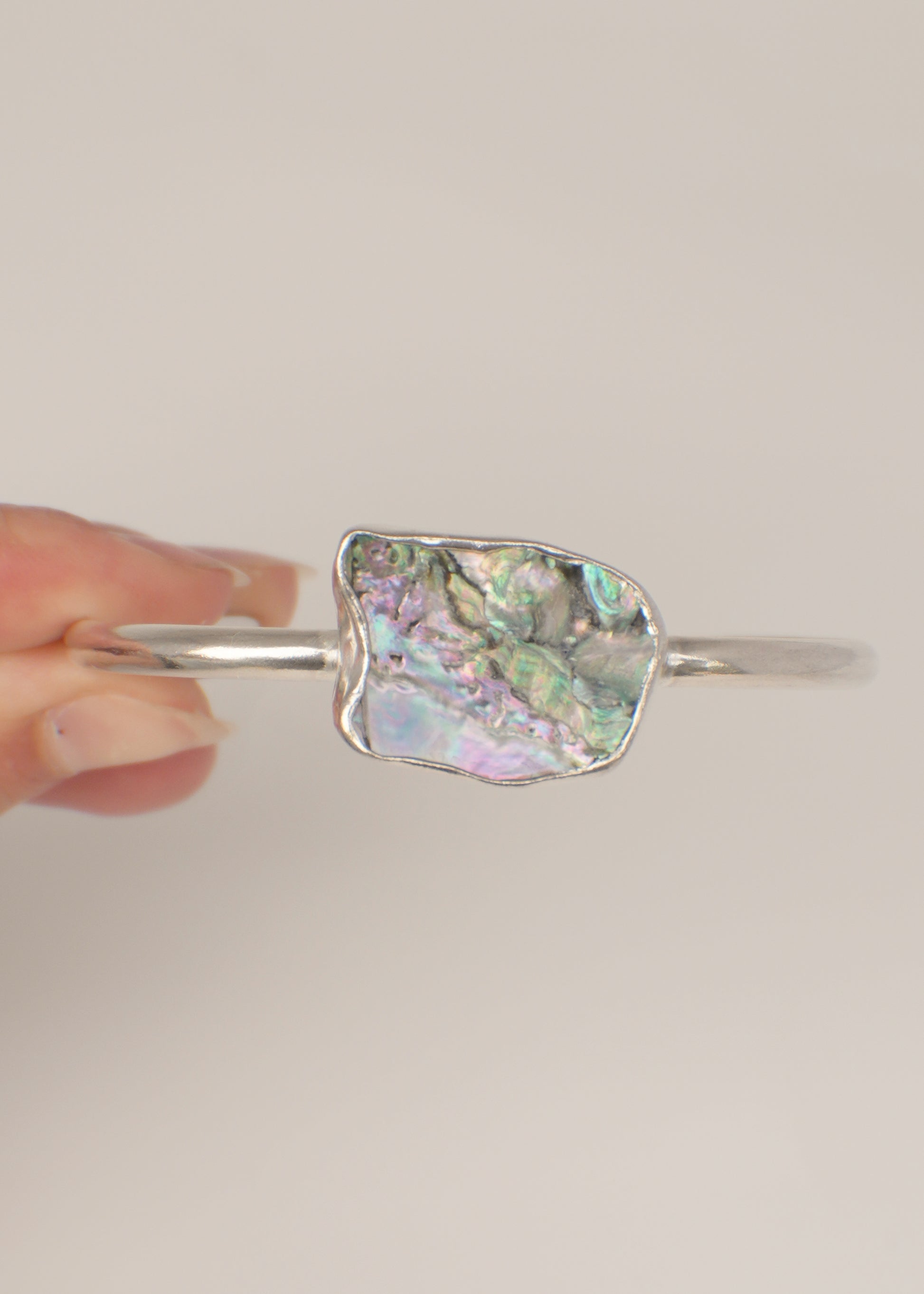 Each of these cuffs are one of a kind as no two pieces of abalone are the same. The abalone is from Northern California and the cuffs are made in Southern California with 999 fine silver and 925 sterling silver.