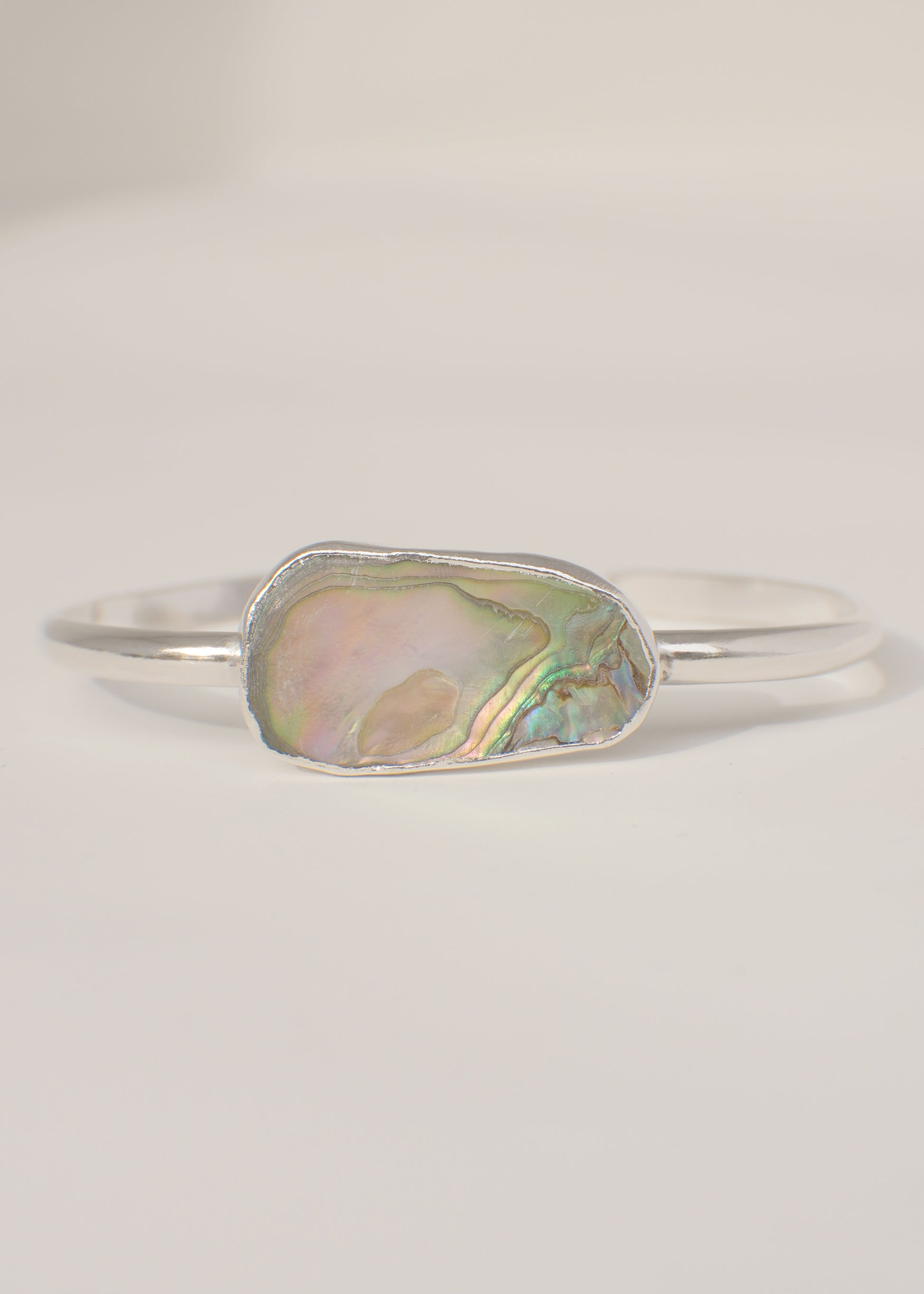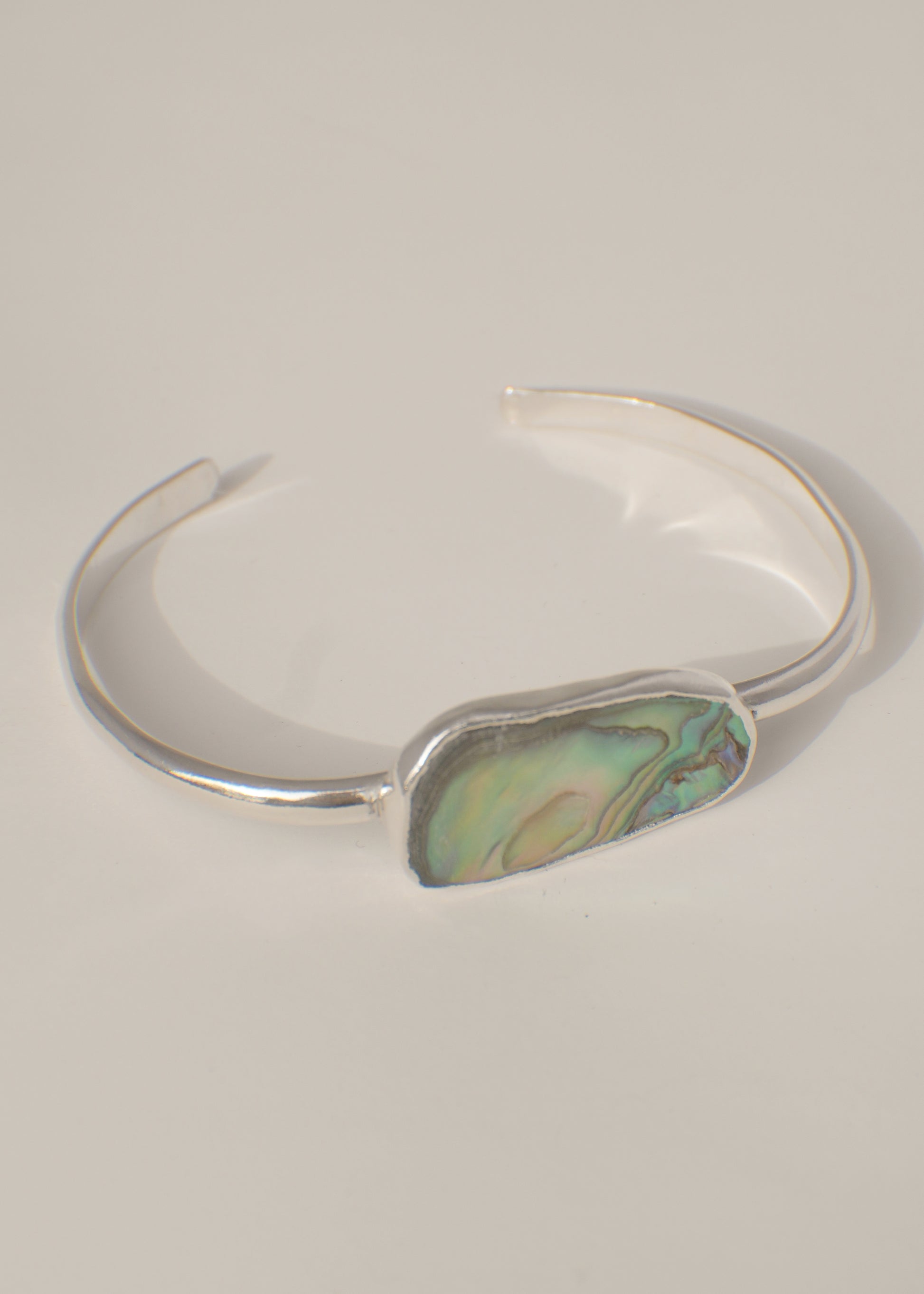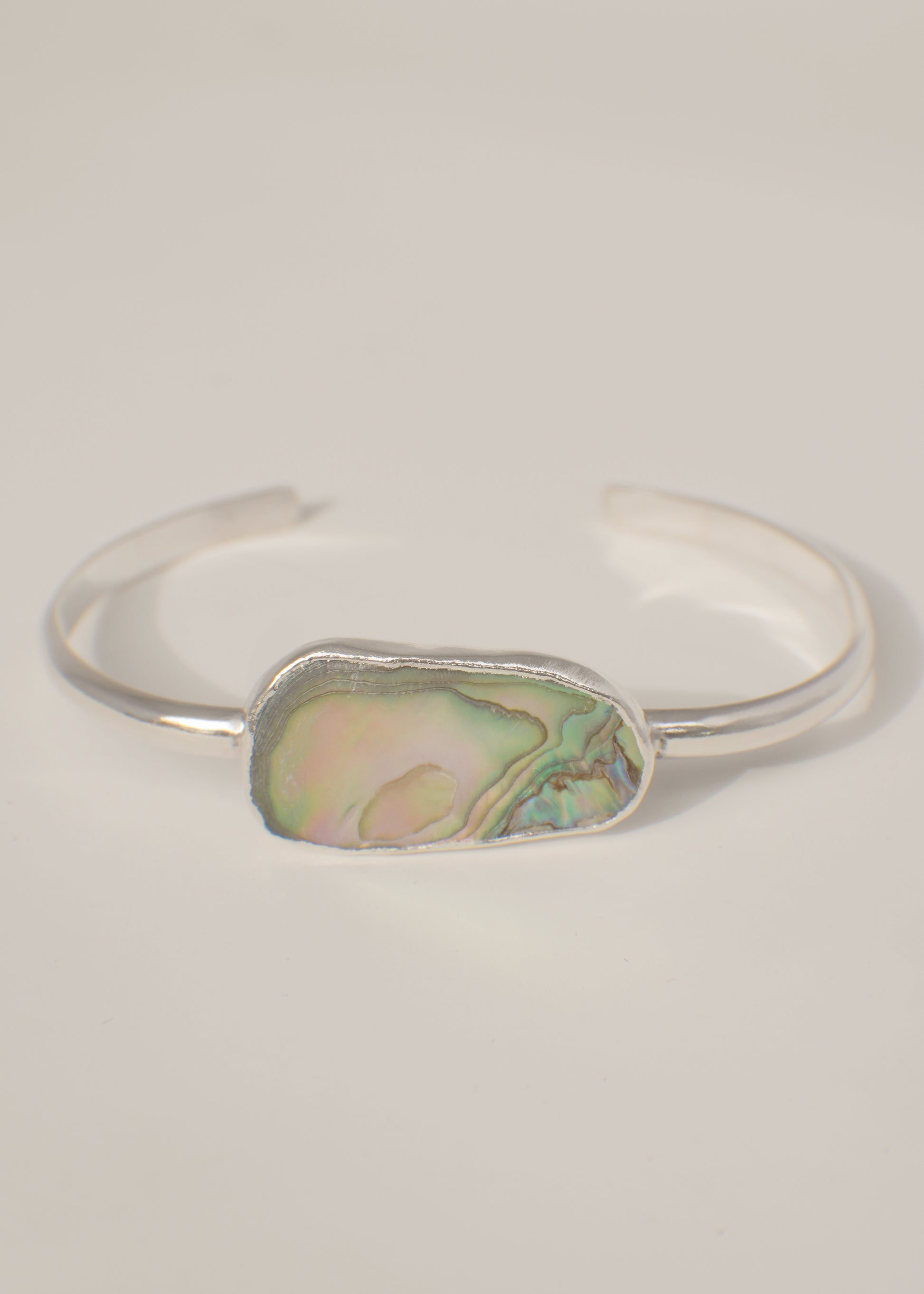Each of these cuffs are one of a kind as no two pieces of abalone are the same. The abalone is from Northern California and the cuffs are made in Southern California with 999 fine silver and 925 sterling silver.