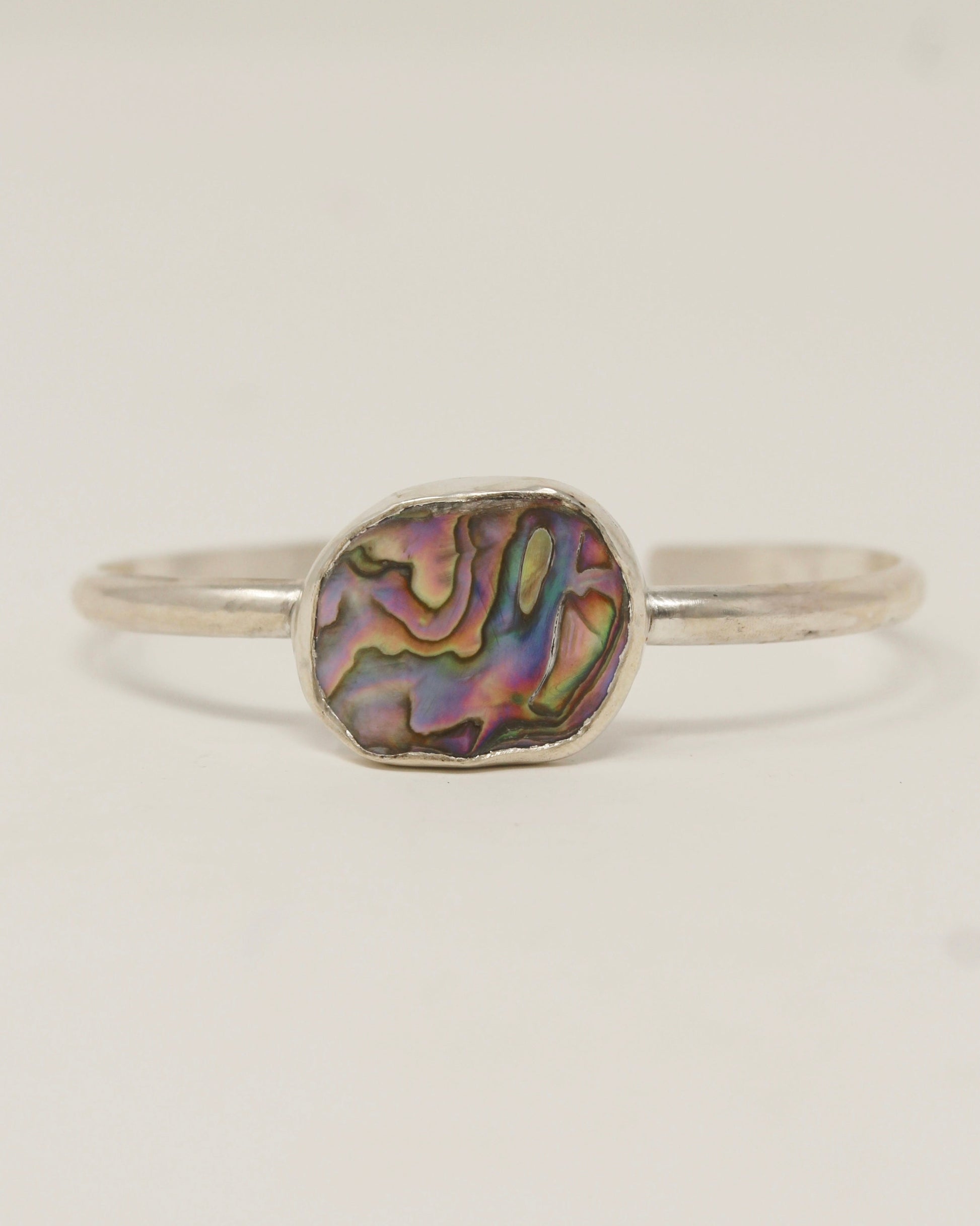 Each of these cuffs are one of a kind as no two pieces of abalone are the same. The abalone is from Northern California and the cuffs are made in Southern California with .925 sterling silver.