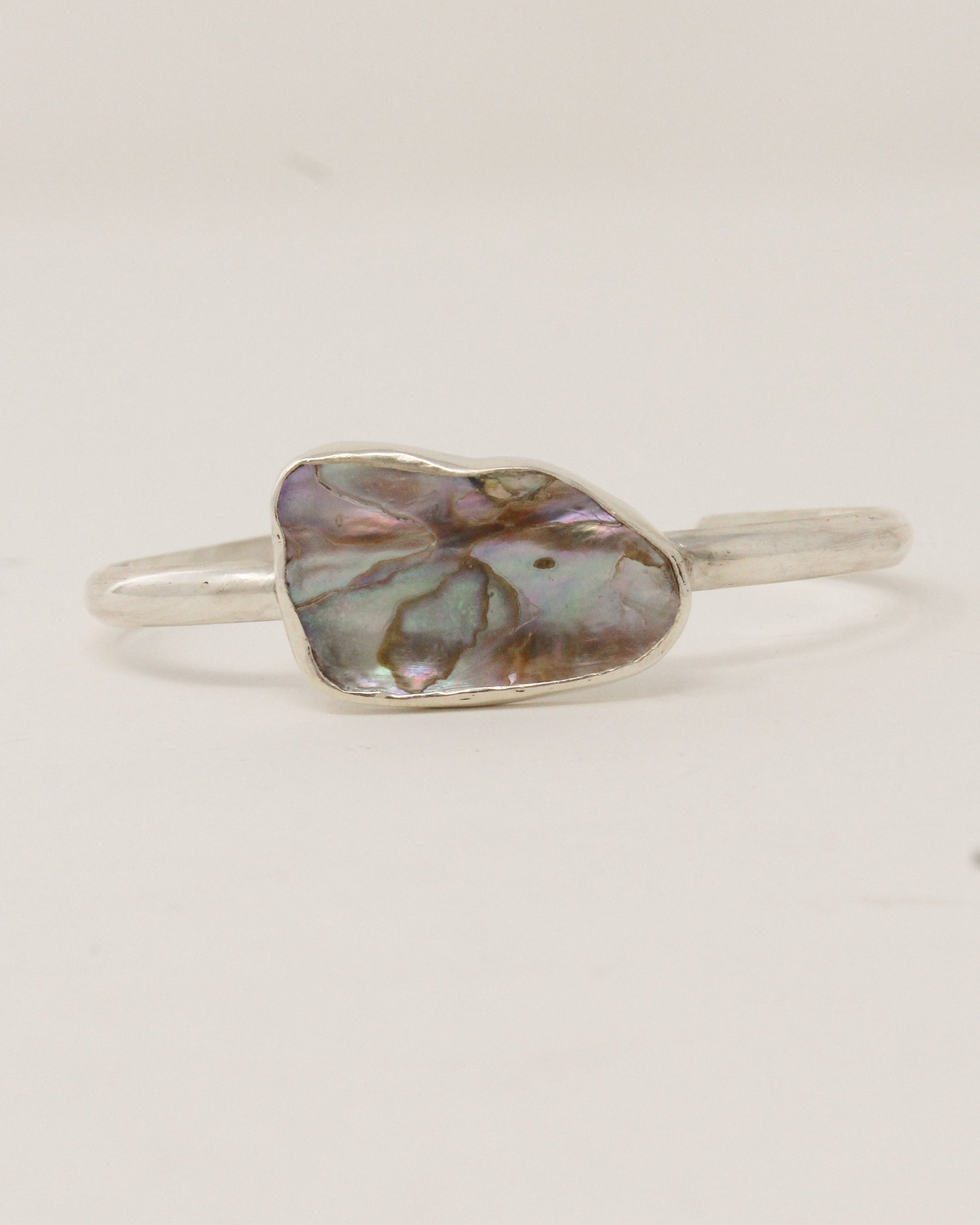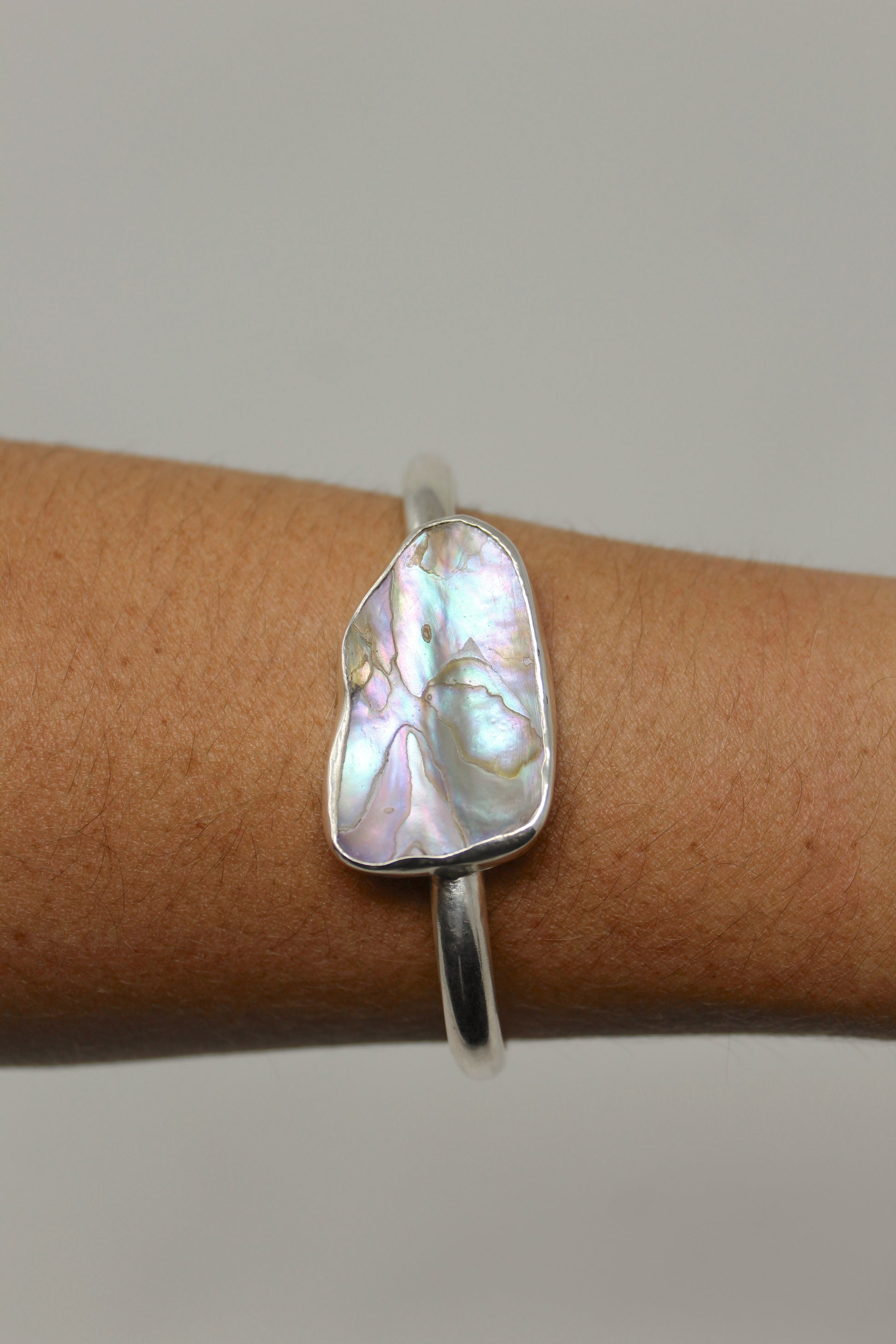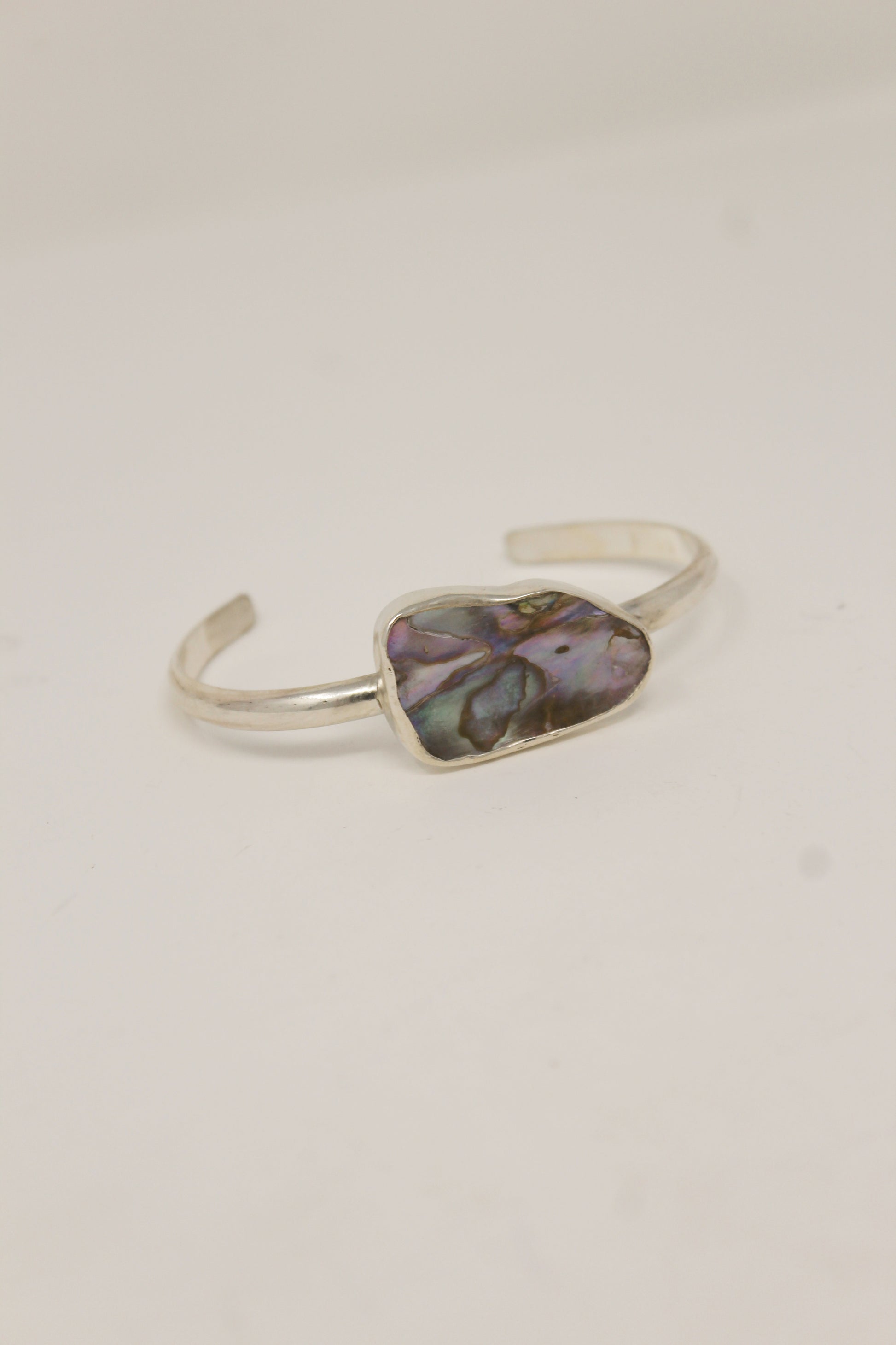 Each of these cuffs are one of a kind as no two pieces of abalone are the same. The abalone is from Northern California and the cuffs are made in Southern California with .925 sterling silver.