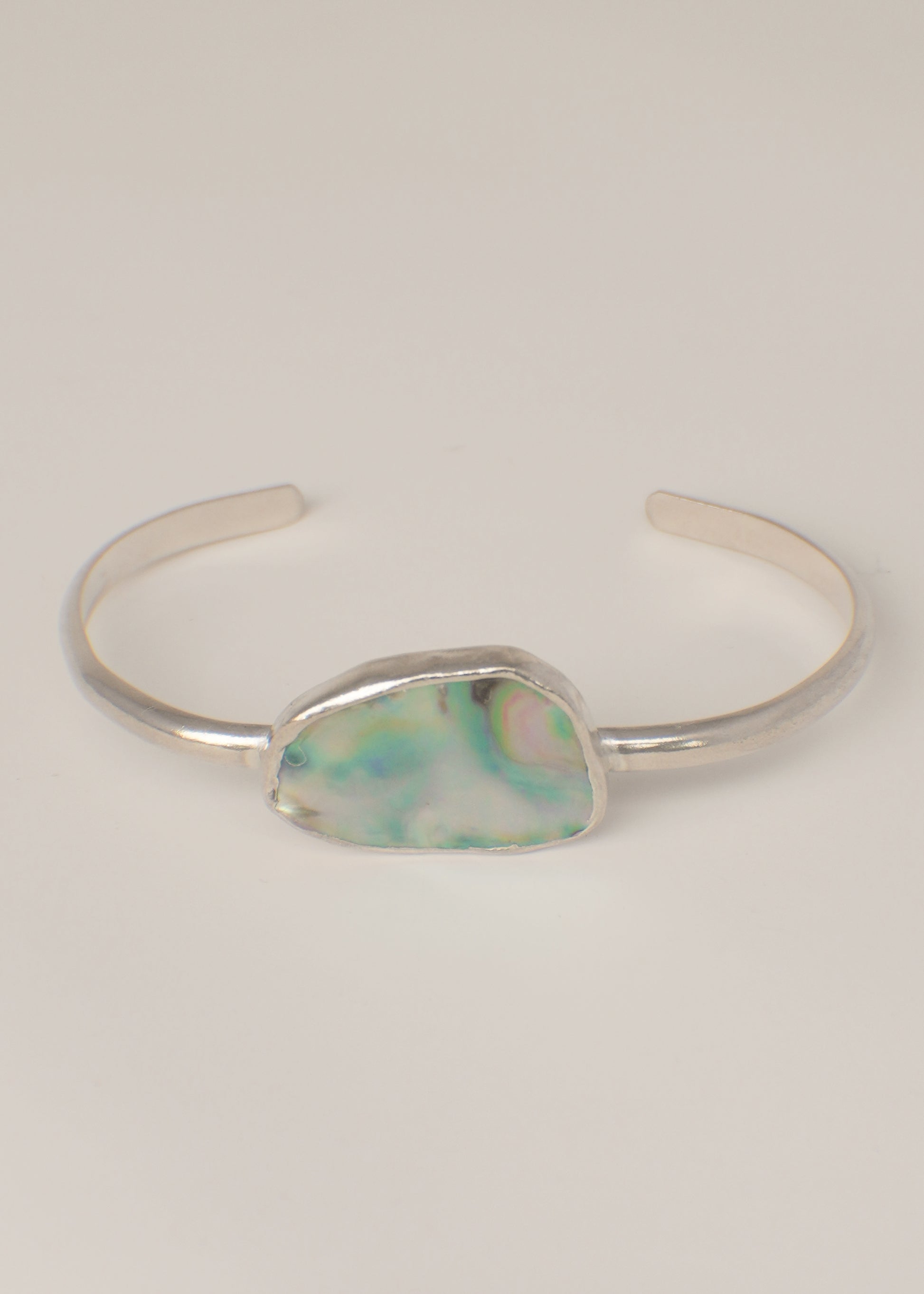 Each of these cuffs are one of a kind as no two pieces of abalone are the same. The abalone is from Northern California and the cuffs are made in Southern California with 999 fine silver and 925 sterling silver.
