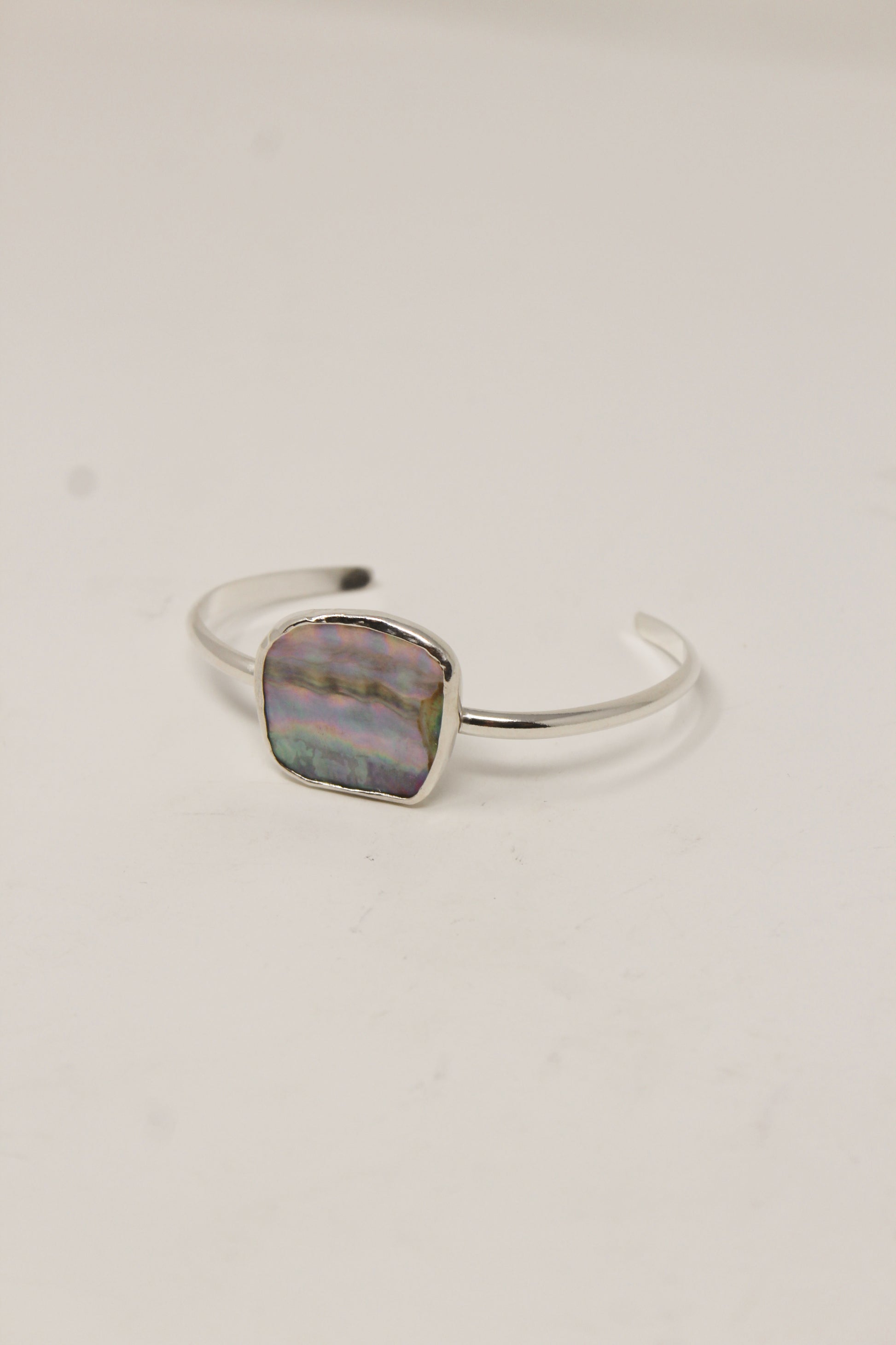 Each of these cuffs are one of a kind as no two pieces of abalone are the same. The abalone is from Northern California and the cuffs are made in Southern California with .925 sterling silver.