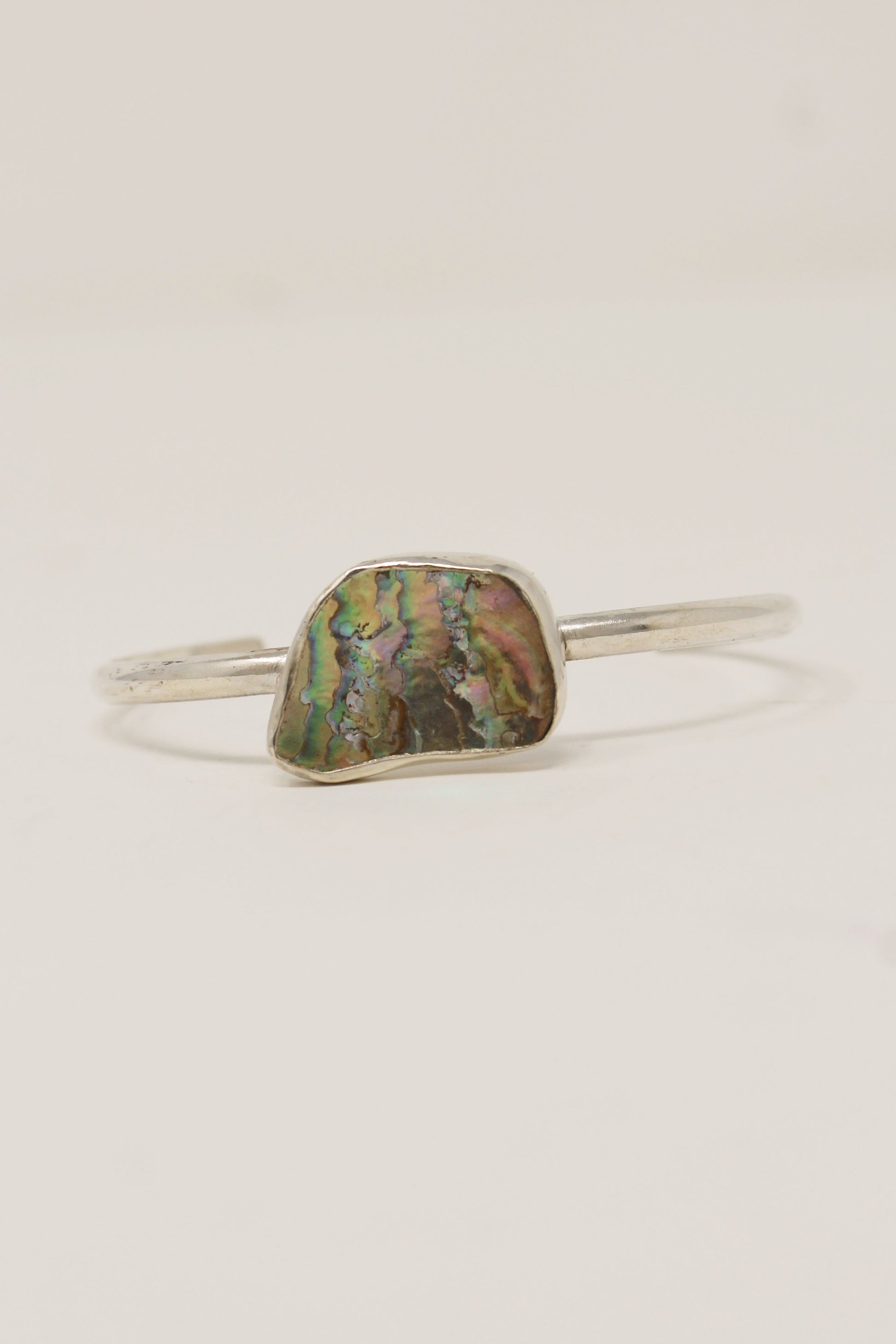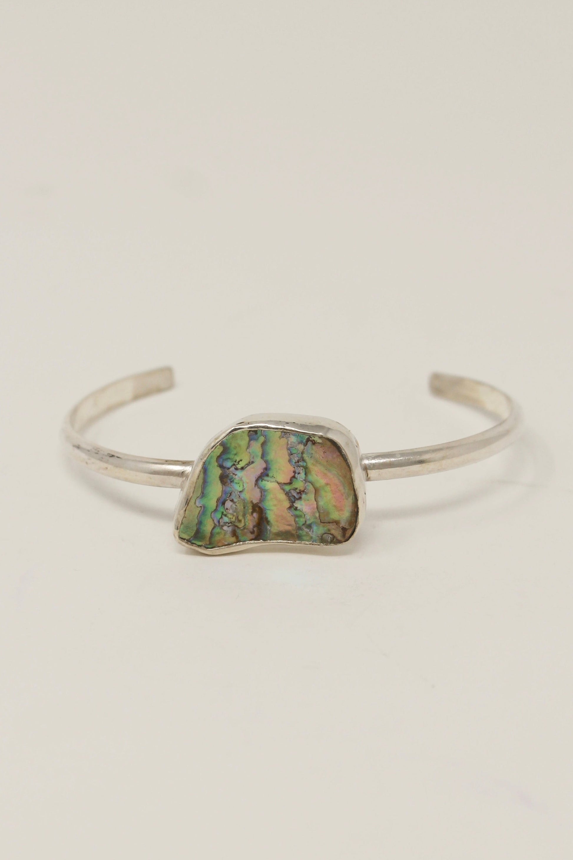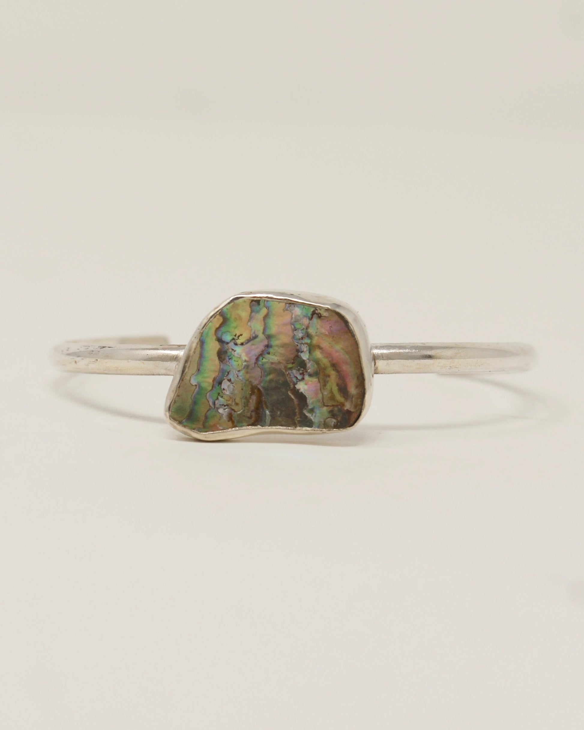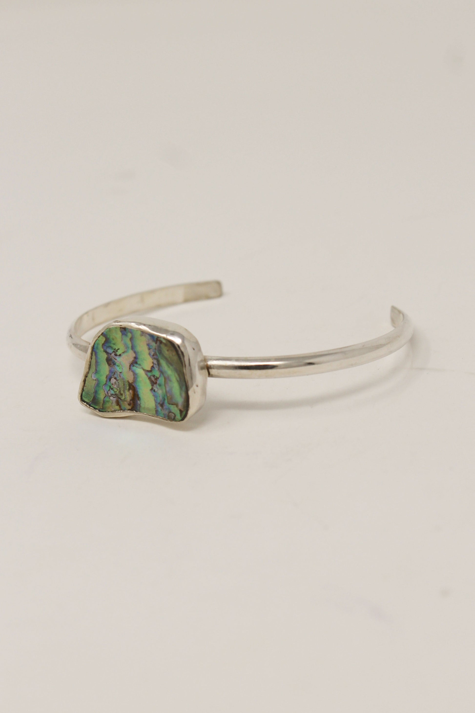 Each of these cuffs are one of a kind as no two pieces of abalone are the same. The abalone is from Northern California and the cuffs are made in Southern California with .925 sterling silver.