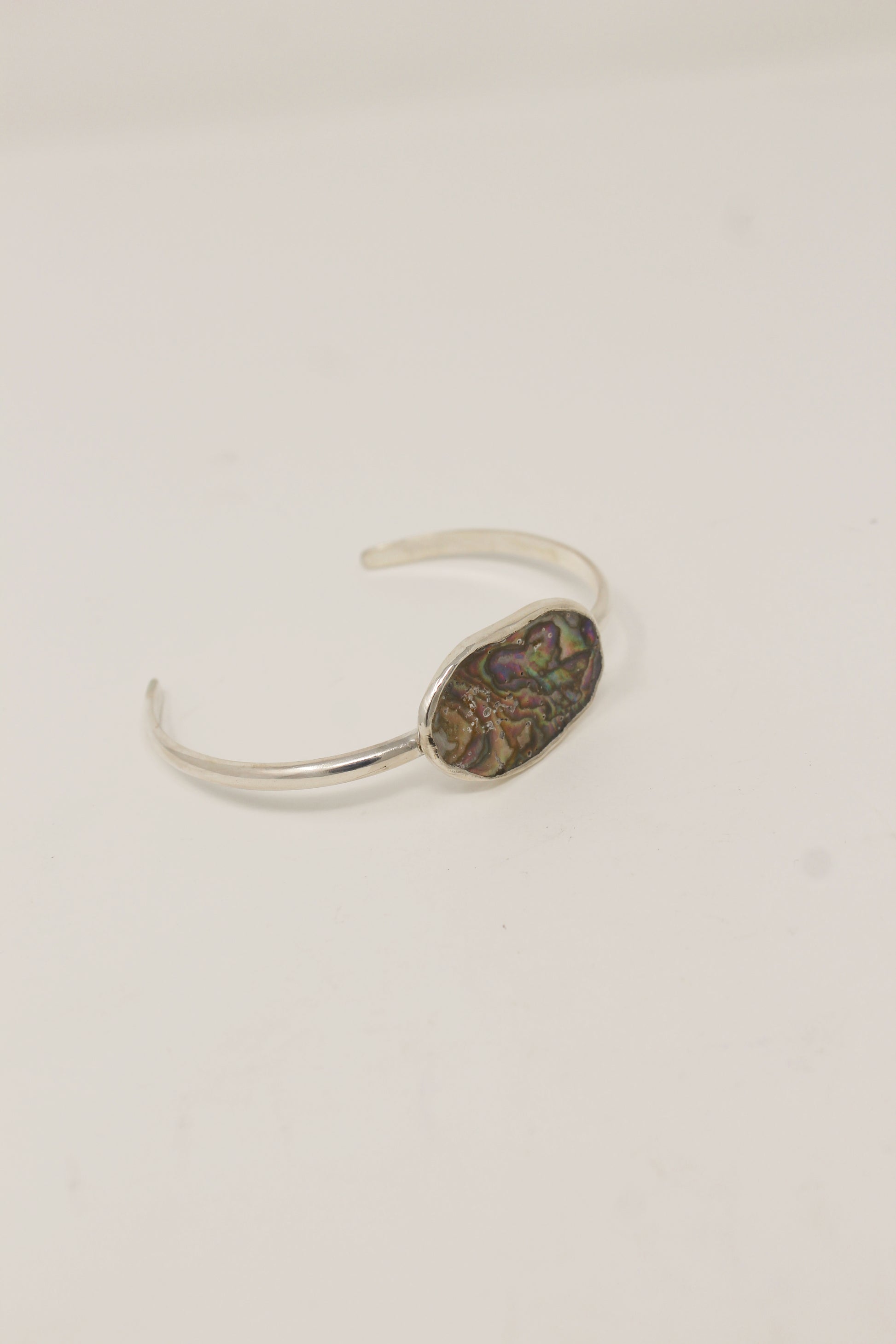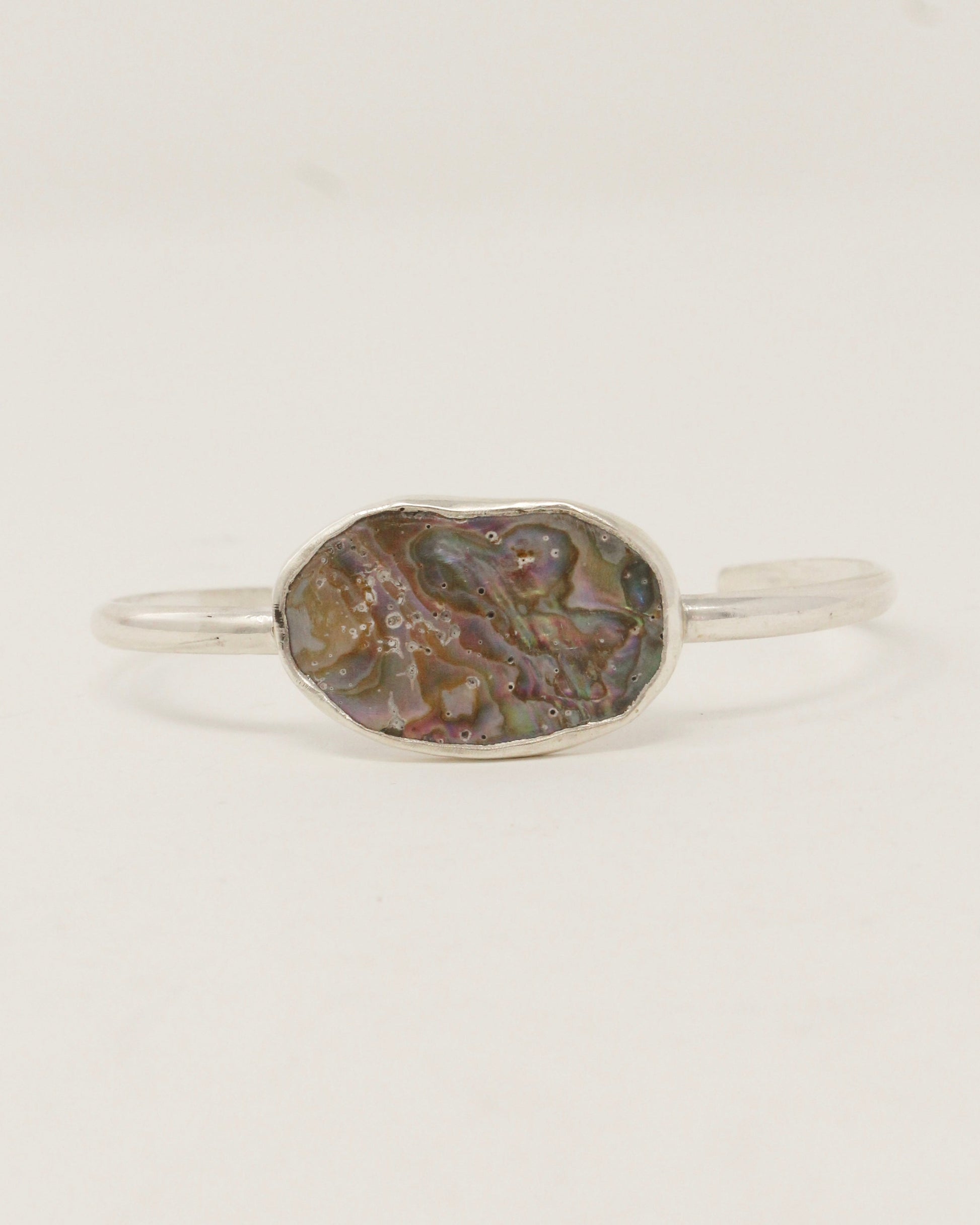 Each of these cuffs are one of a kind as no two pieces of abalone are the same. The abalone is from Northern California and the cuffs are made in Southern California with .925 sterling silver.