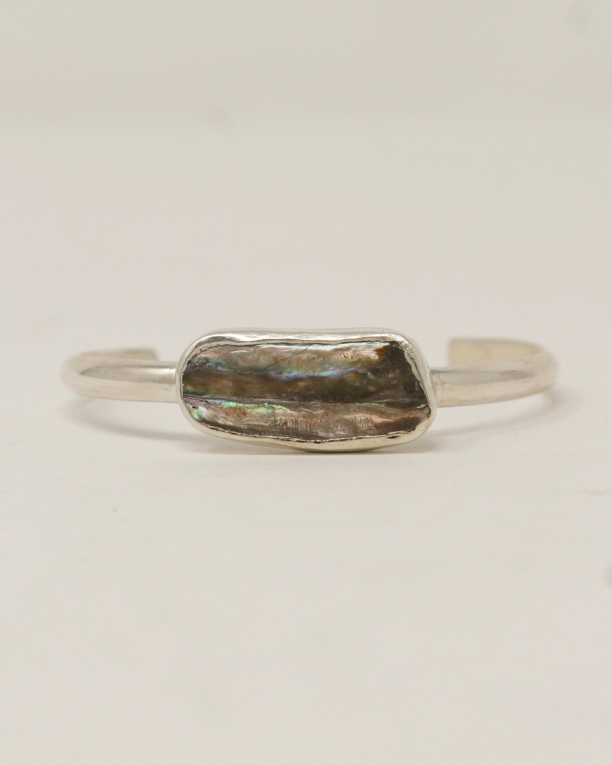 Each of these cuffs are one of a kind as no two pieces of abalone are the same. The abalone is from Northern California and the cuffs are made in Southern California with .925 sterling silver.