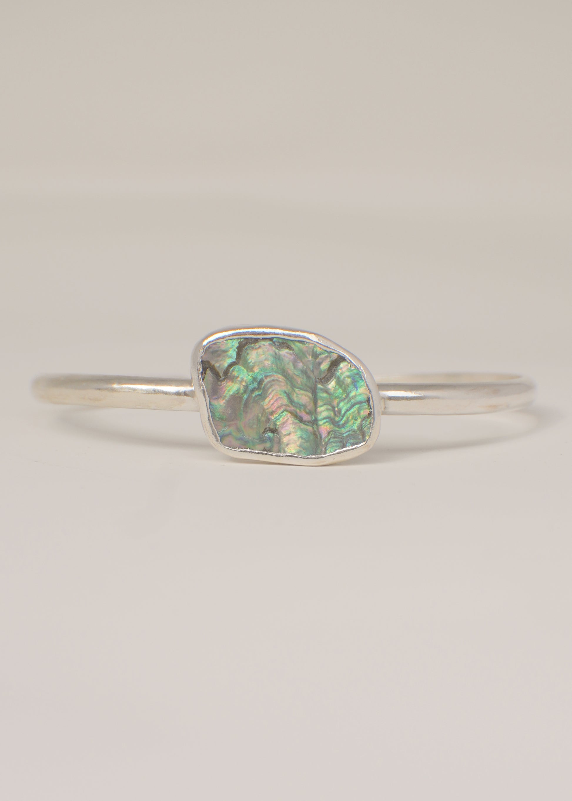 Each of these cuffs are one of a kind as no two pieces of abalone are the same. The abalone is from Northern California and the cuffs are made in Southern California with 999 fine silver and 925 sterling silver.