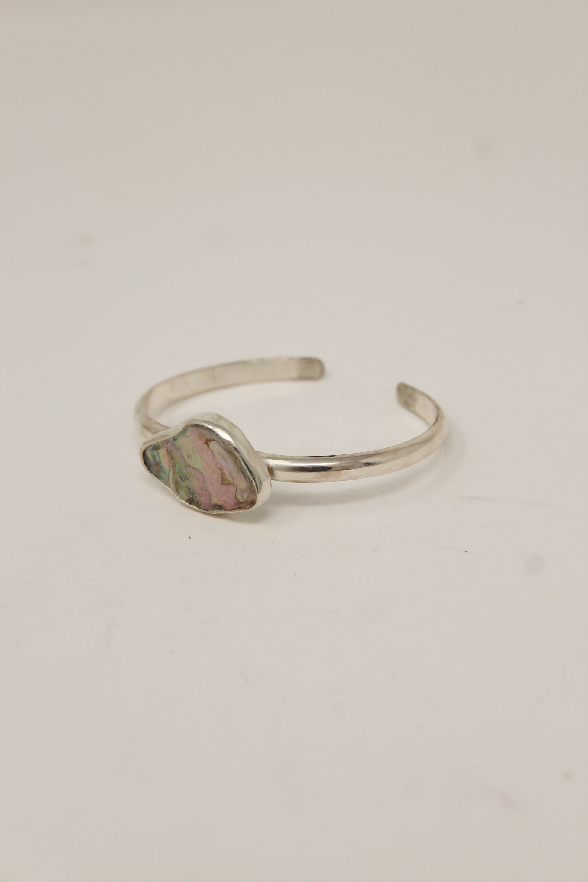 Each of these cuffs are one of a kind as no two pieces of abalone are the same. The abalone is from Northern California and the cuffs are made in Southern California with .925 sterling silver.