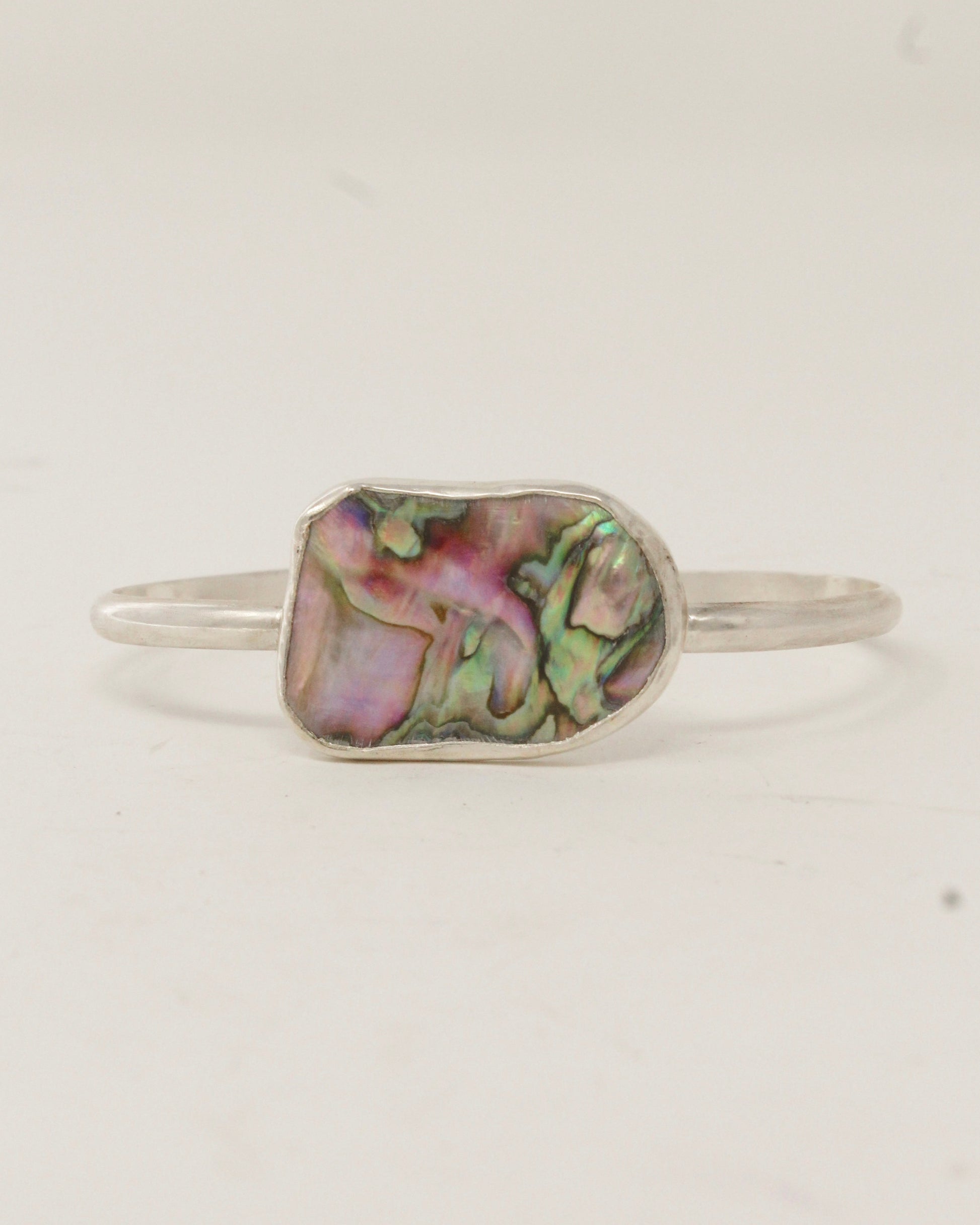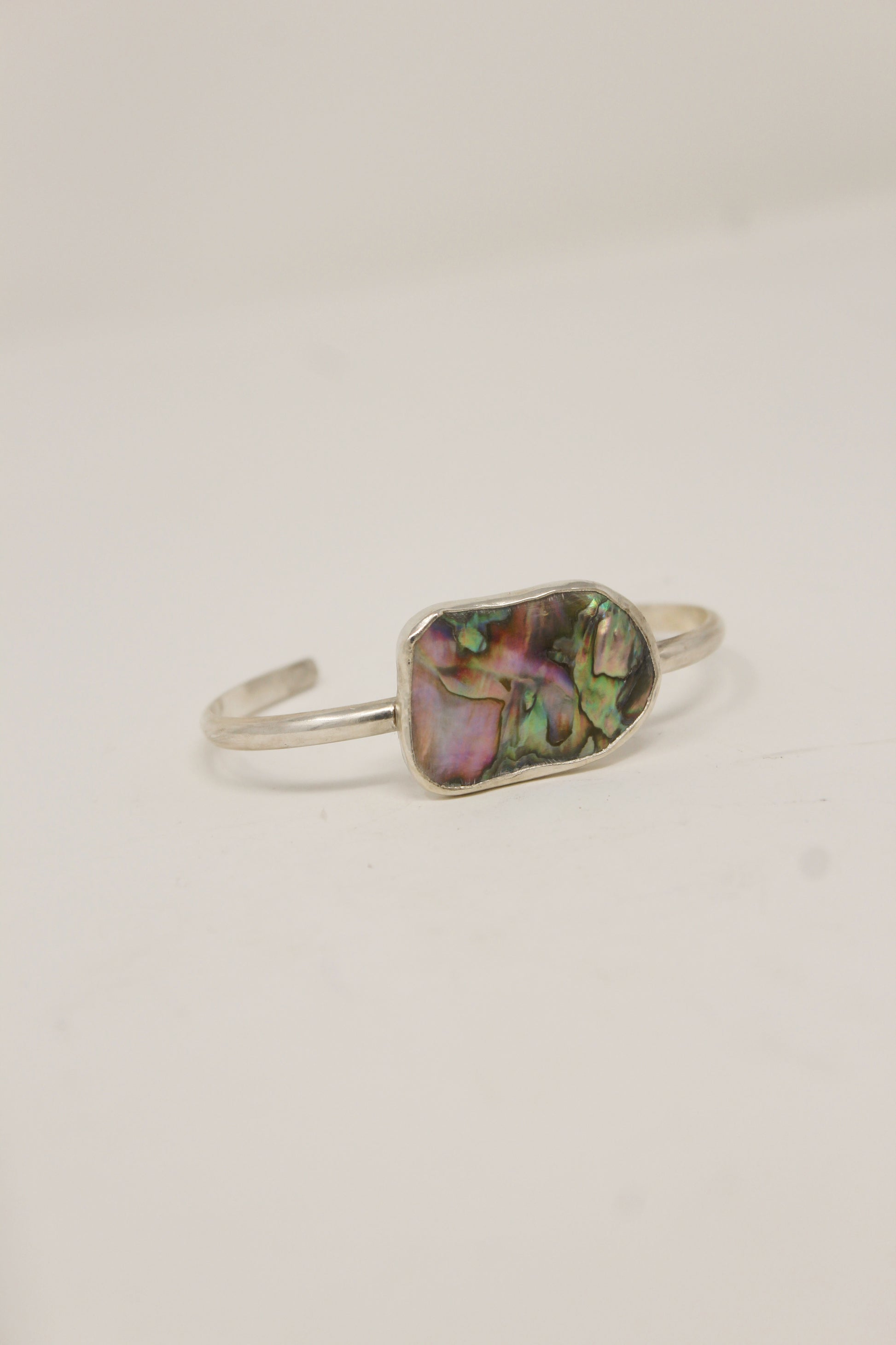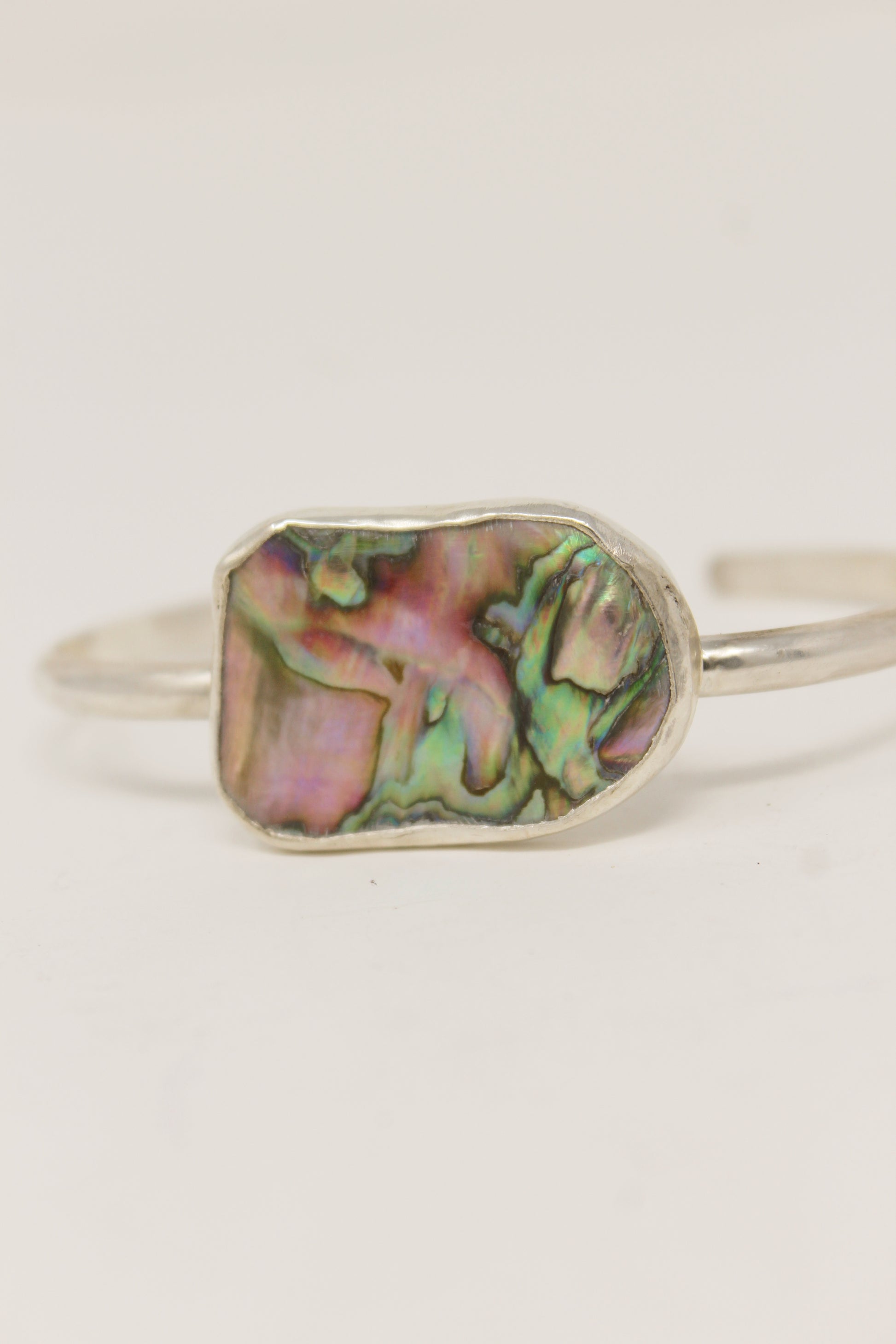 Each of these cuffs are one of a kind as no two pieces of abalone are the same. The abalone is from Northern California and the cuffs are made in Southern California with .925 sterling silver.