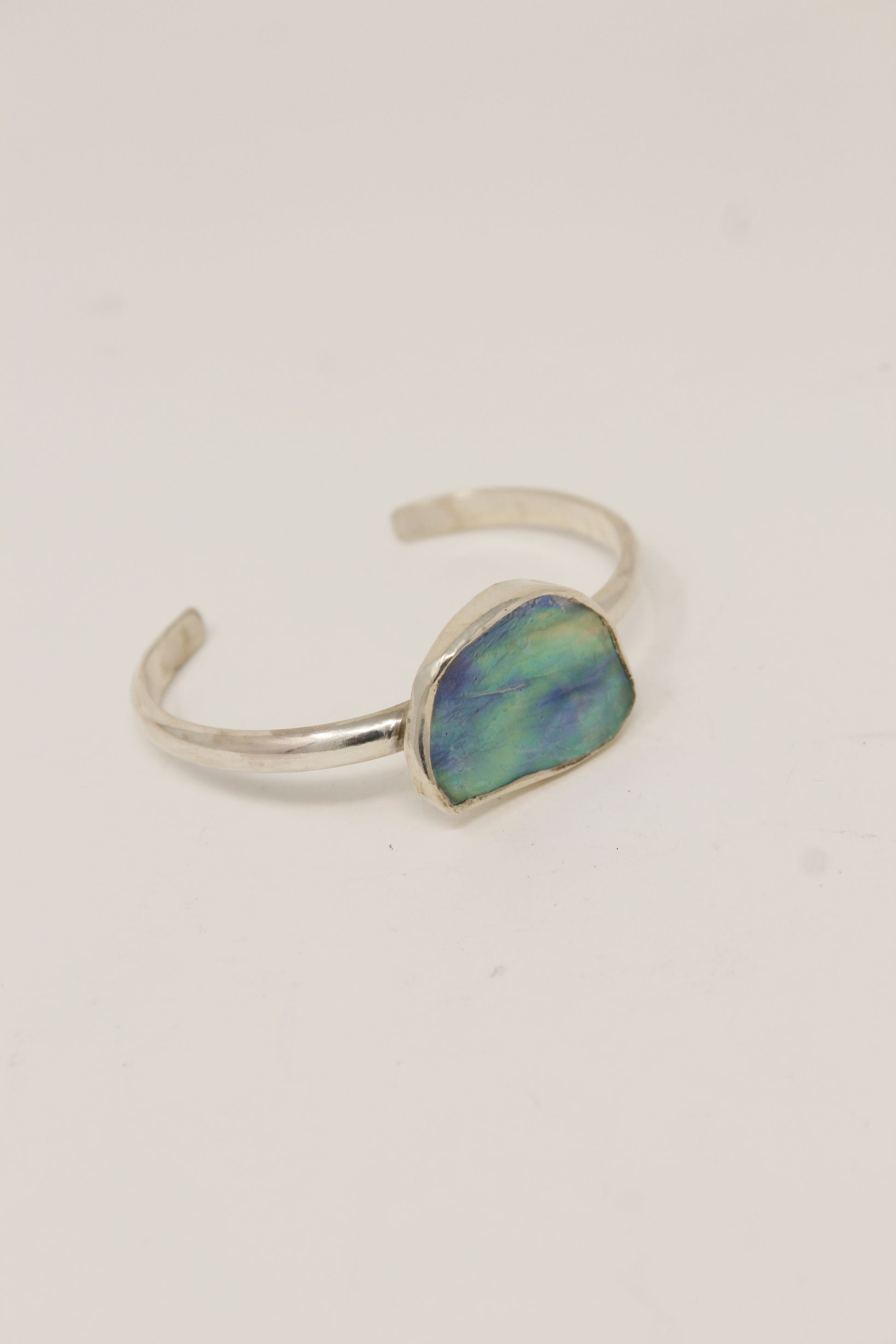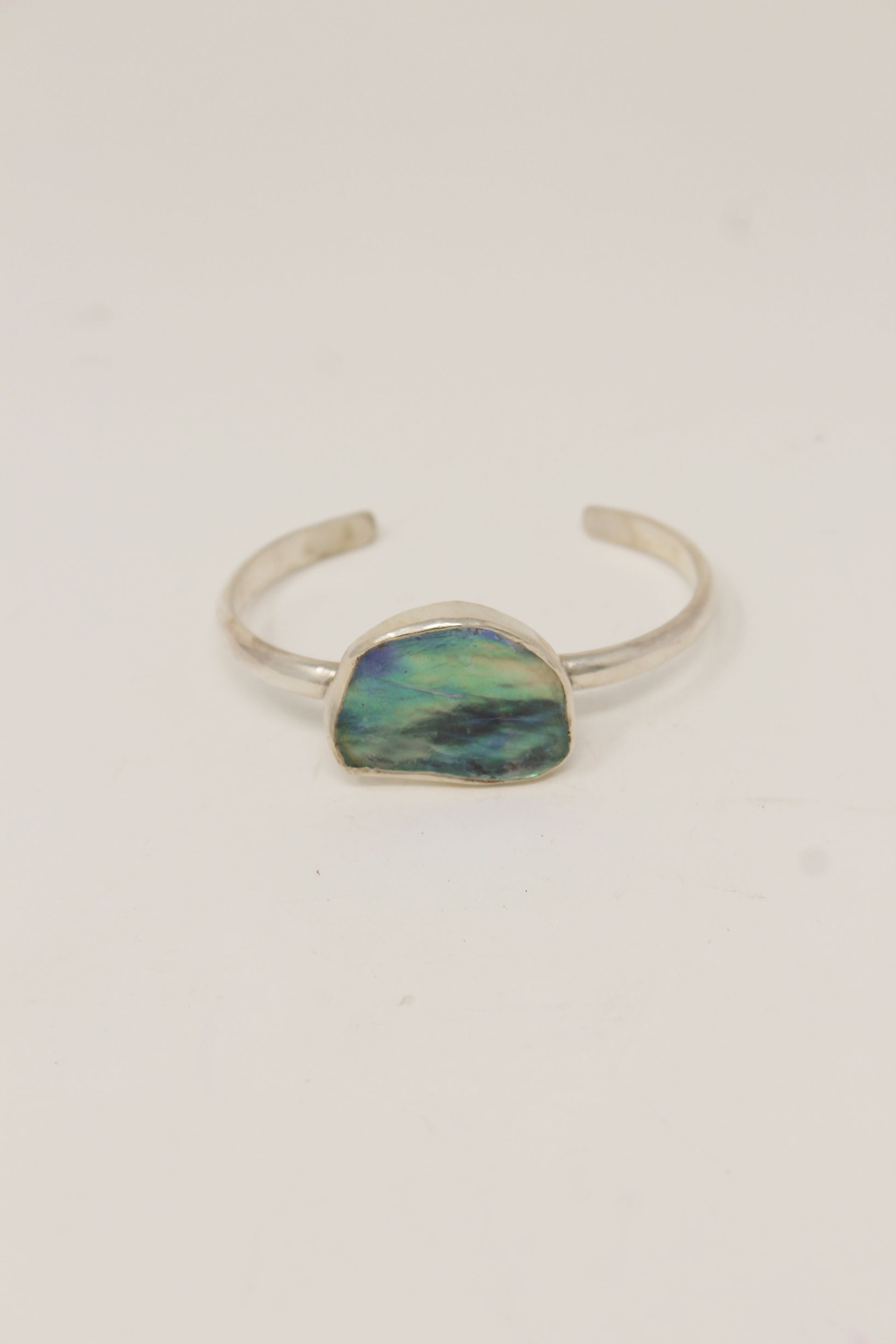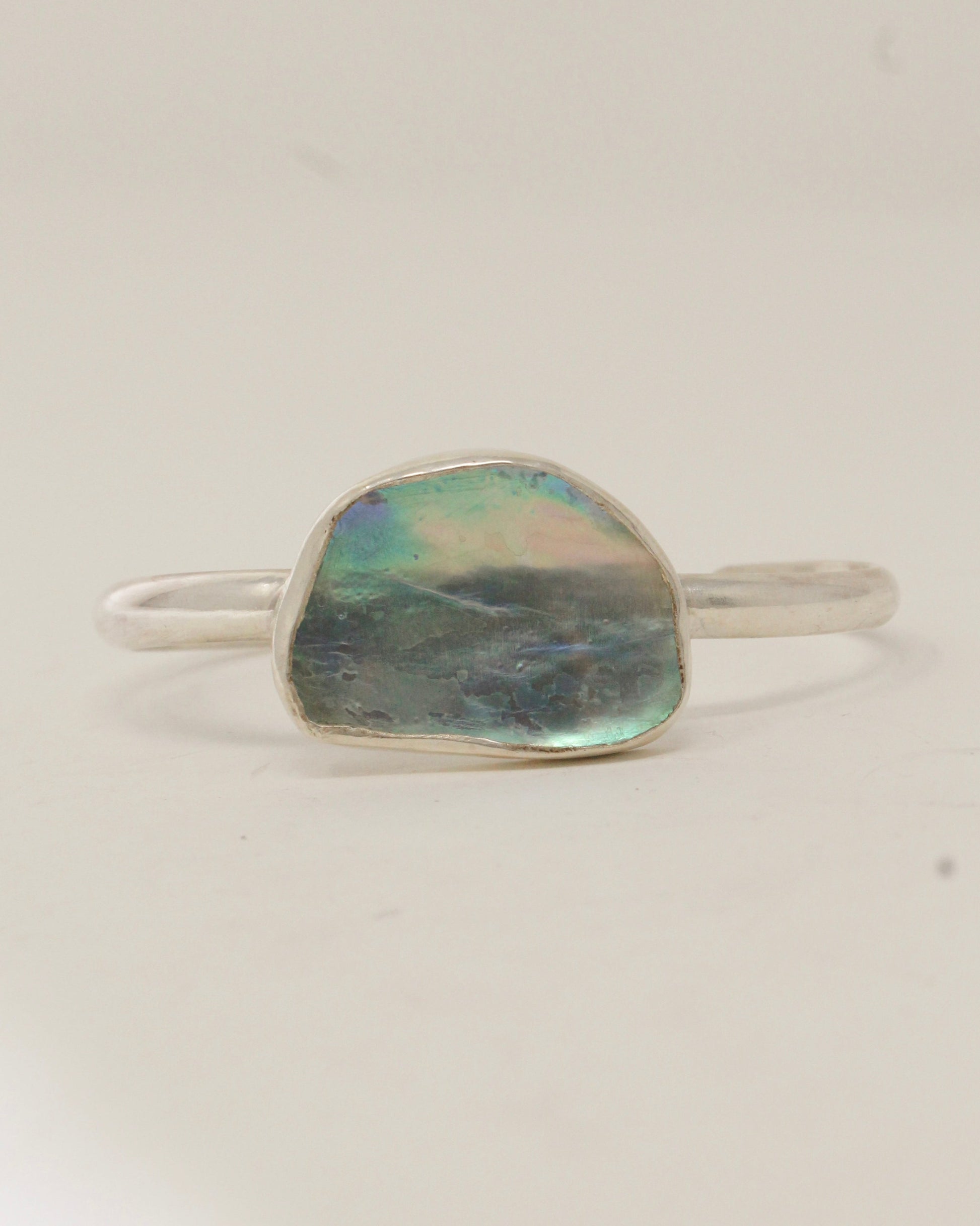 Each of these cuffs are one of a kind as no two pieces of abalone are the same. The abalone is from Northern California and the cuffs are made in Southern California with .925 sterling silver.