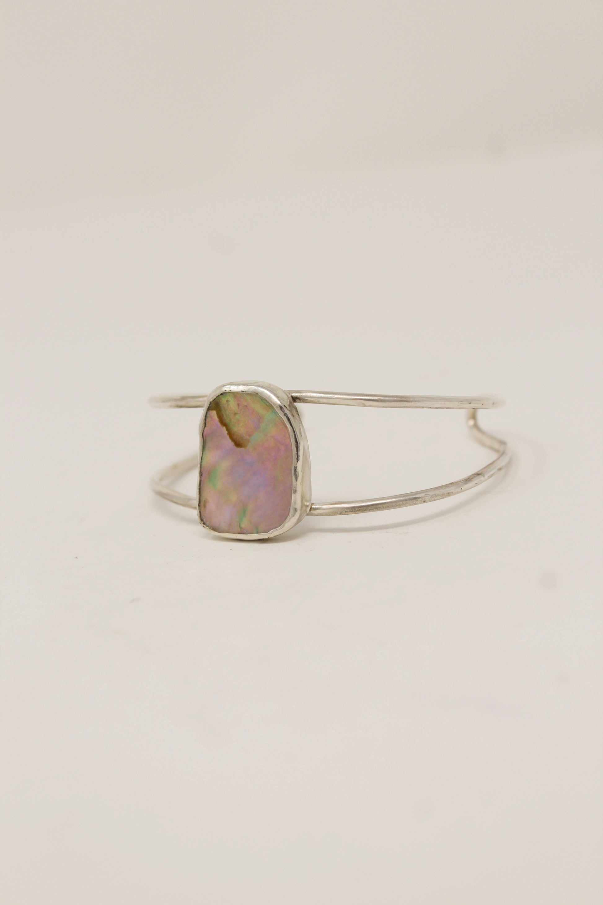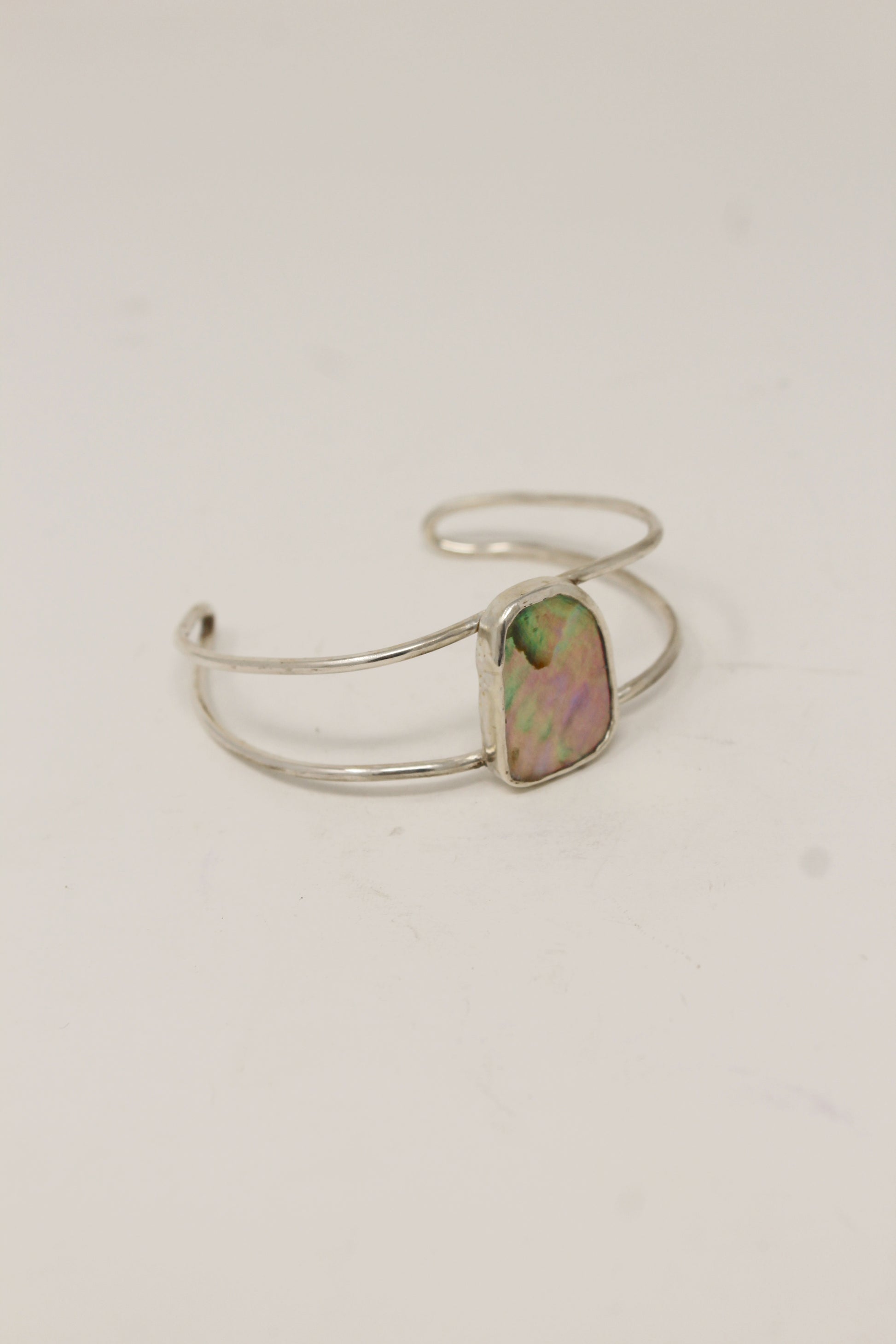 Each of these cuffs are one of a kind as no two pieces of abalone are the same. The abalone is from Northern California and the cuffs are made in Southern California with .925 sterling silver.