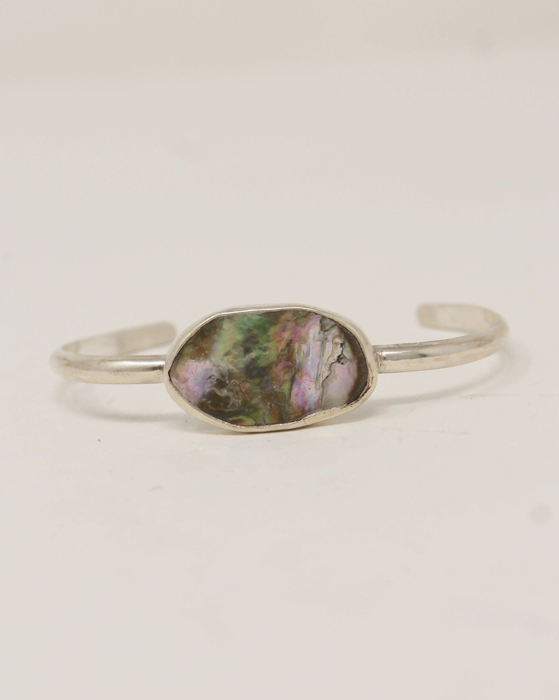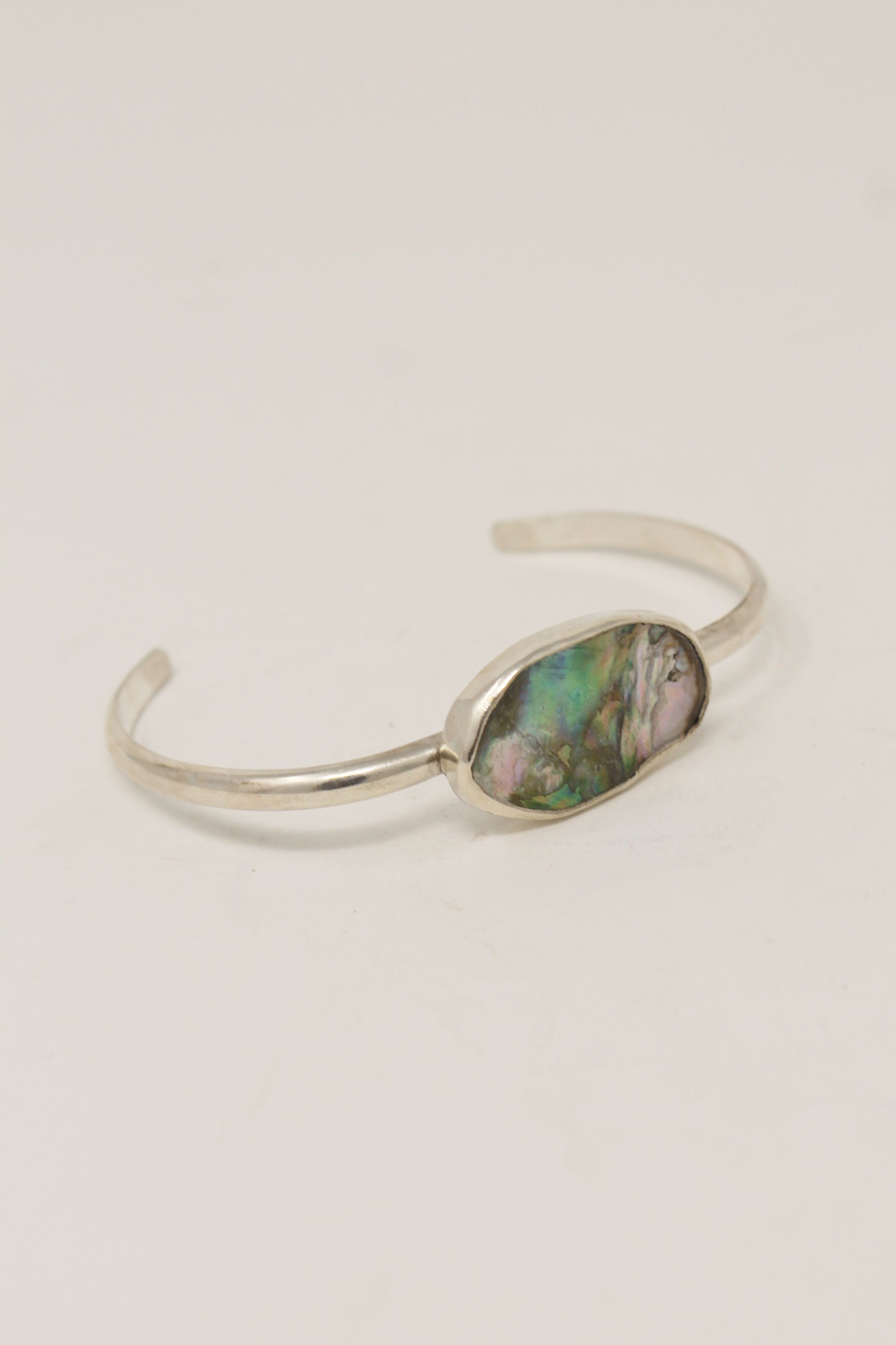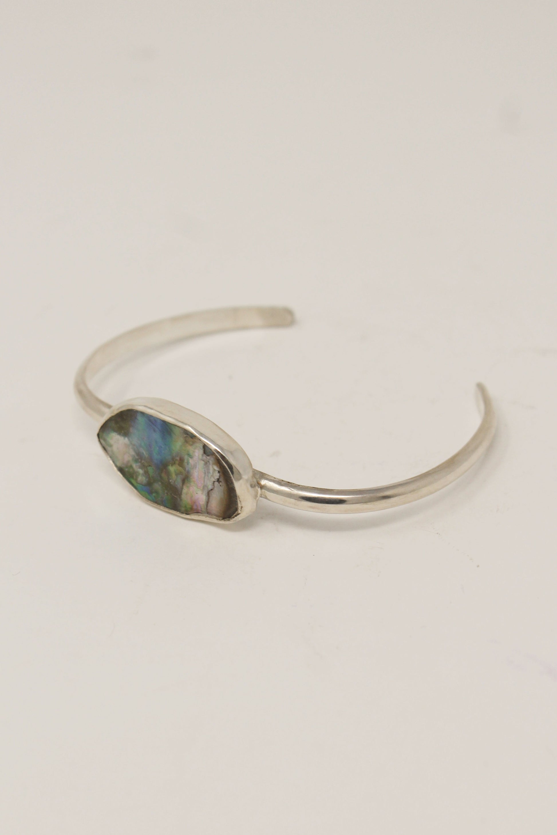 Each of these cuffs are one of a kind as no two pieces of abalone are the same. The abalone is from Northern California and the cuffs are made in Southern California with .925 sterling silver.