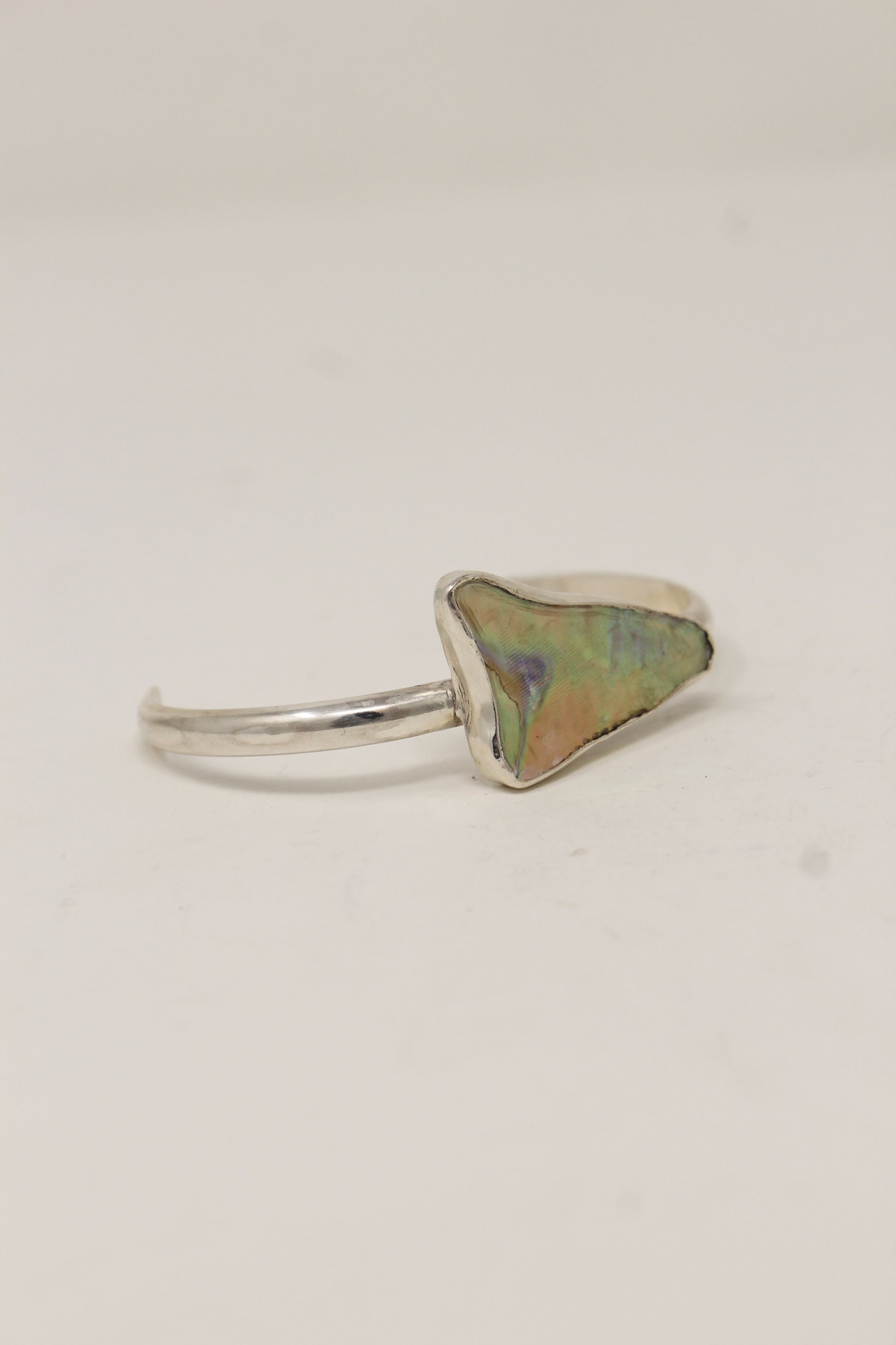 Each of these cuffs are one of a kind as no two pieces of abalone are the same. The abalone is from Northern California and the cuffs are made in Southern California with .925 sterling silver.