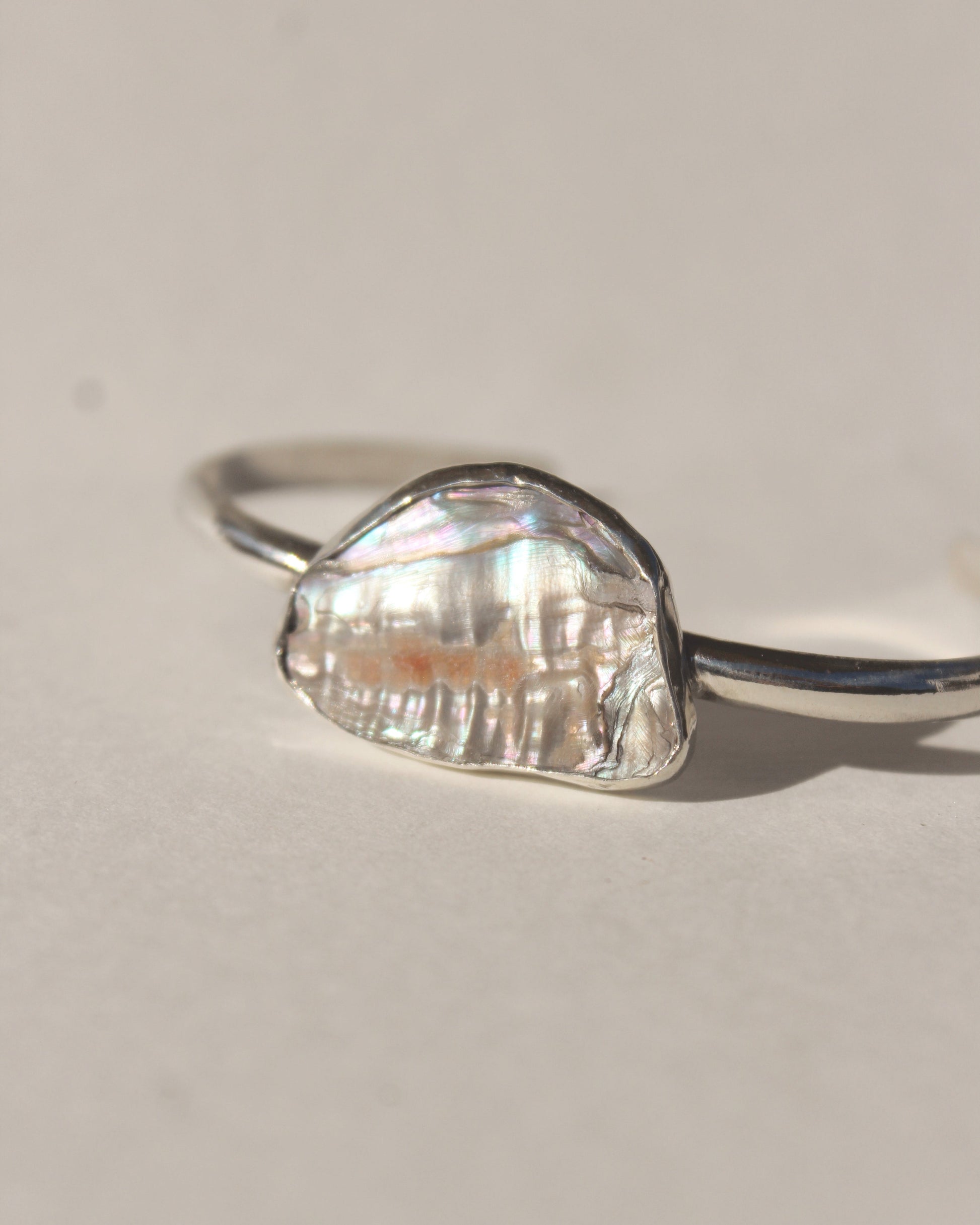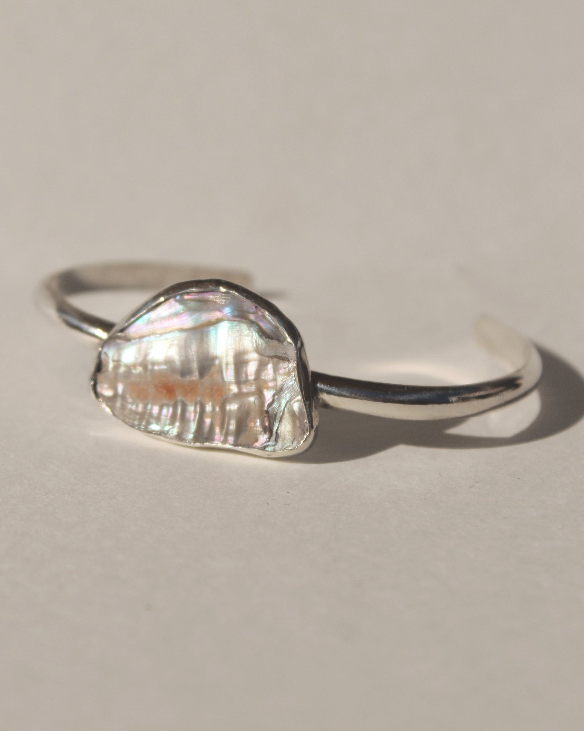Each of these cuffs are one of a kind as no two pieces of abalone are the same. The abalone is from Northern California and the cuffs are made in Southern California with .925 sterling silver.