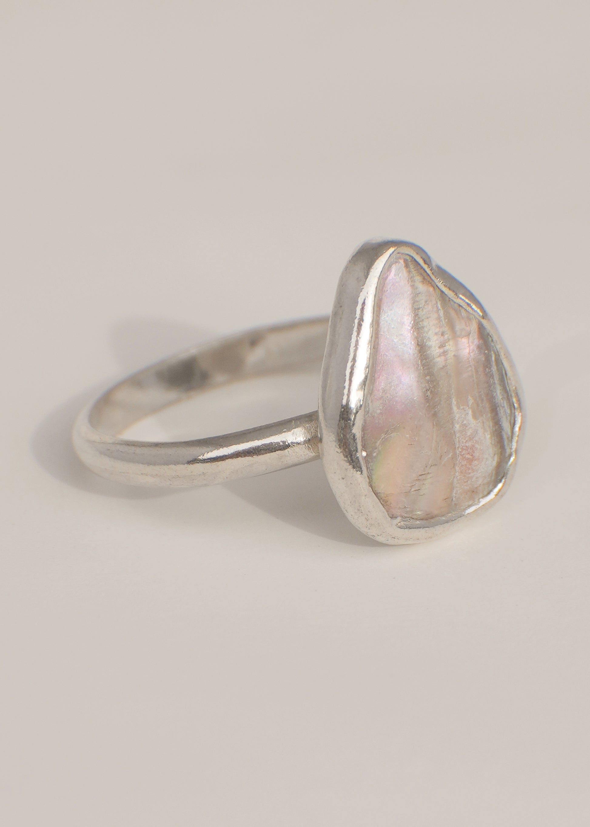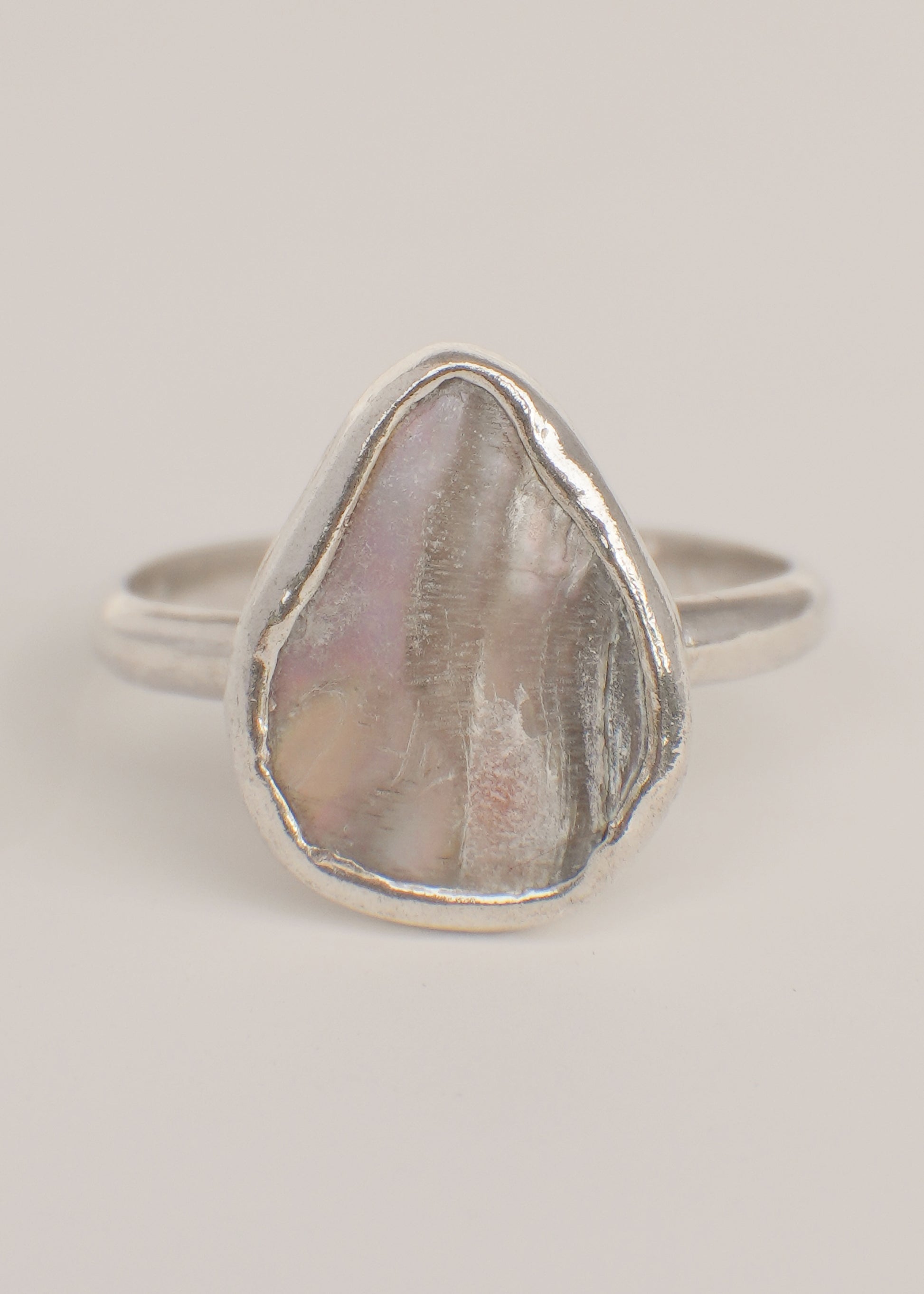 Handcrafted with 999 fine silver, 925 sterling silver and a small piece of abalone, set on a dainty band.
