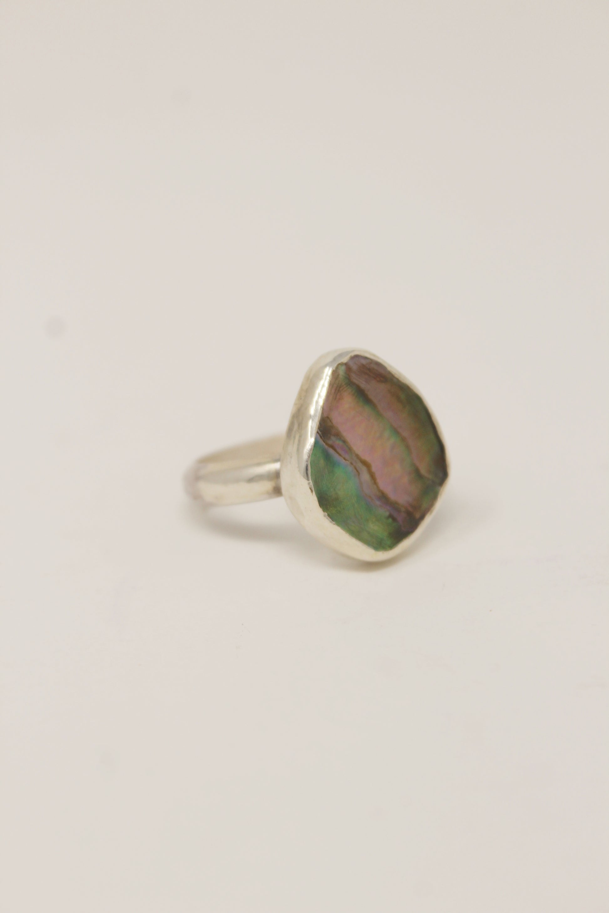 Handcrafted with 925 sterling silver and a small piece of abalone, set on a chunky band.