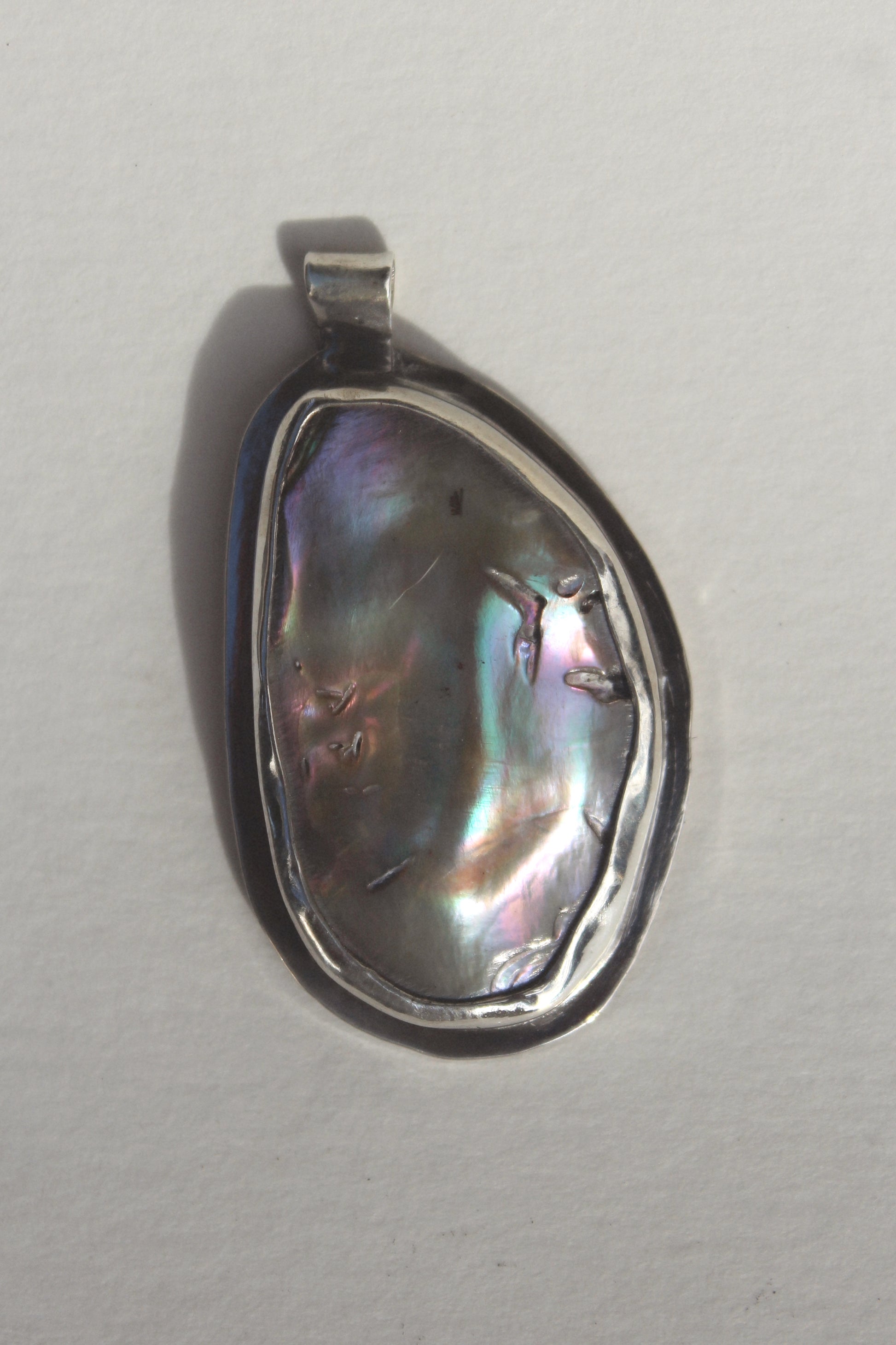 Made with .925 sterling silver and a piece of abalone from Northern California.