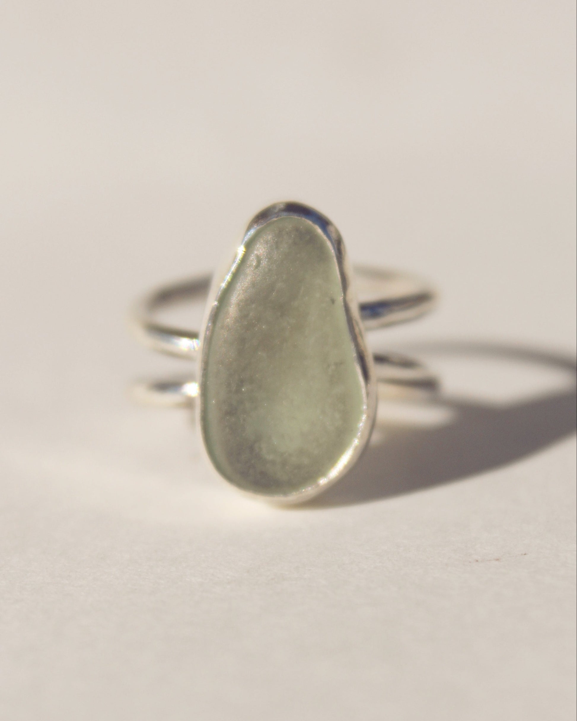 Handcrafted with 925 sterling silver and a small piece of sea glass, this ring features a double spiral band to add a statement finish that will last a lifetime no matter the adventures you take it on